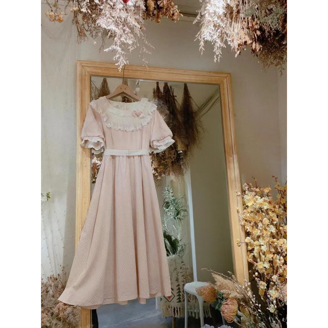 法式甜美蝴蝶结蕾丝泡泡连衣裙女2025夏季新款超仙收腰提花蓬蓬裙