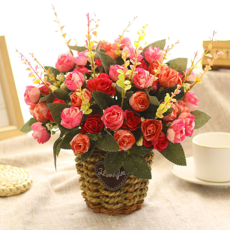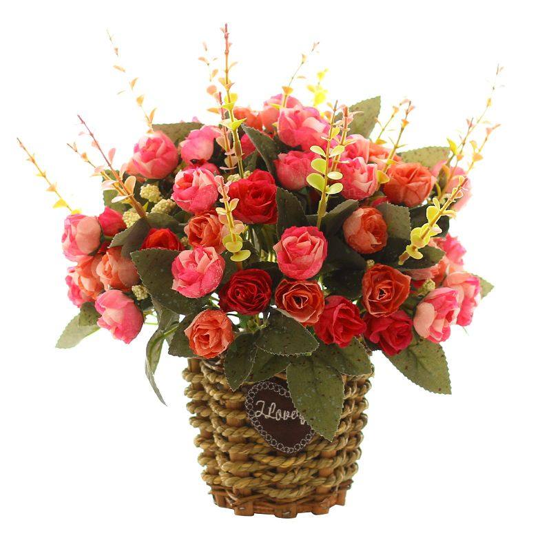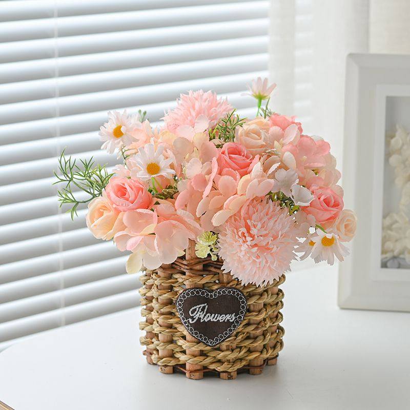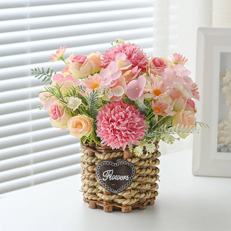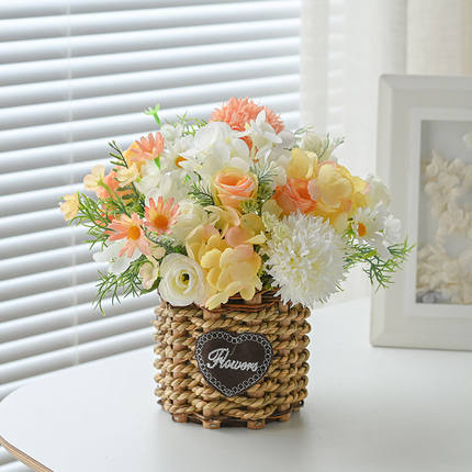 仿真花花束插花艺装饰品向日葵假花摆件户外装饰草编蓝插花