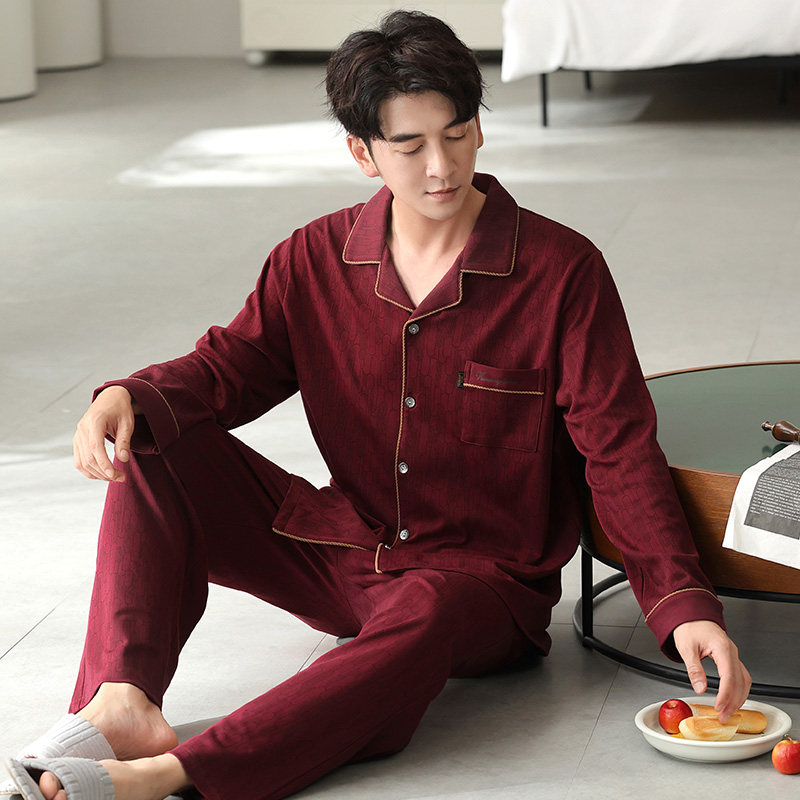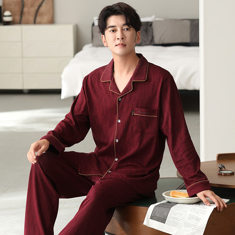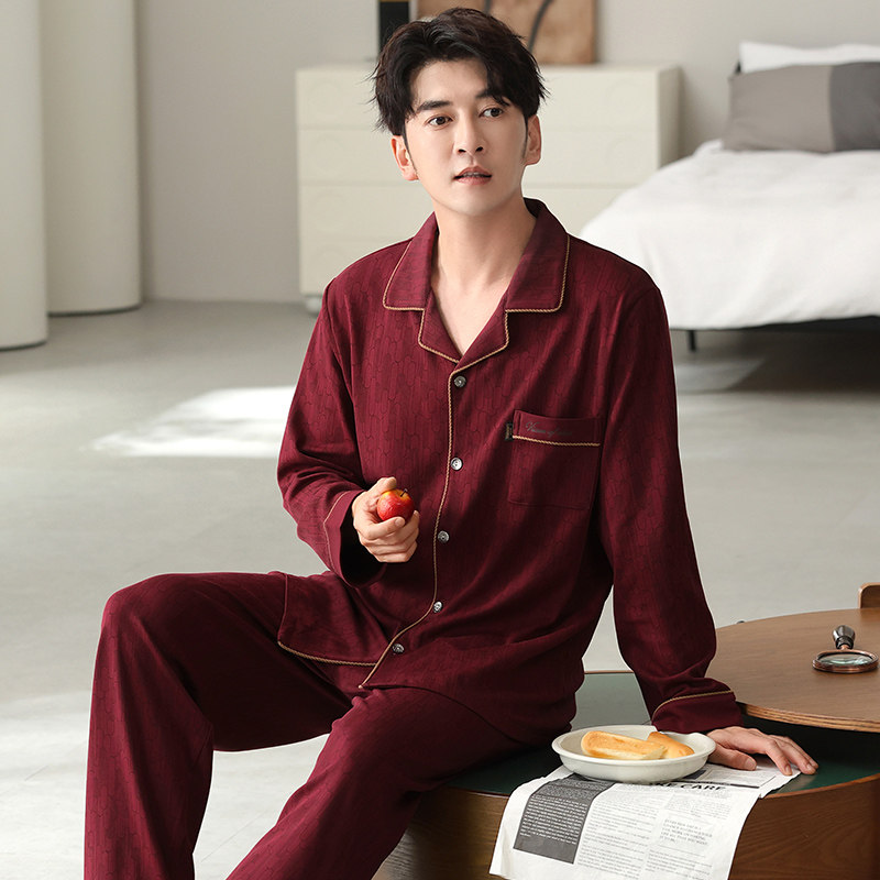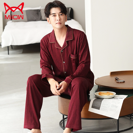 猫人睡衣男春秋款纯棉长袖红色蛇年本命年男士秋冬全棉大码家居服
