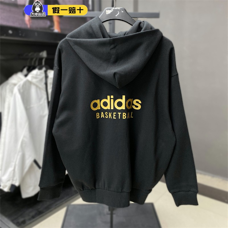 阿迪达斯卫衣男春季龙年新款加绒保暖运动休闲连帽套头衫JE3500
