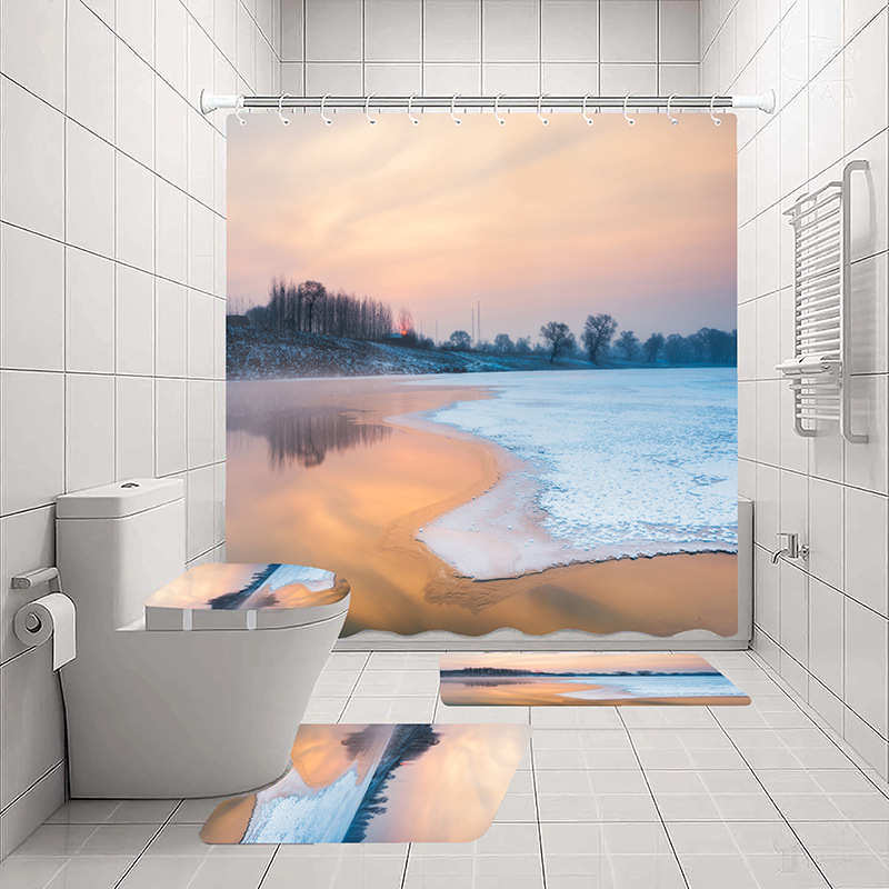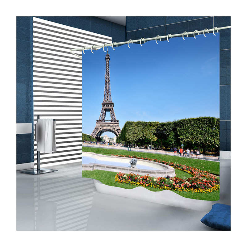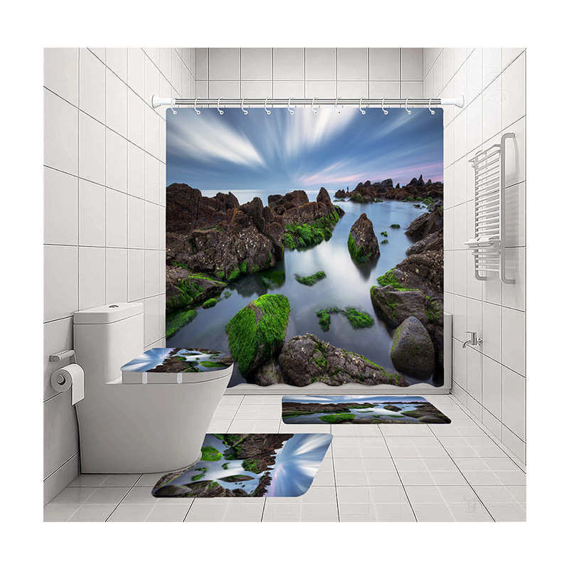 数码印花海滩浴室帘 热卖浴帐浴罩卫生间隔断免打孔浴帘套装