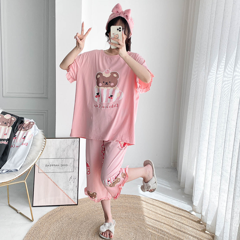 短袖七分裤夏季纯棉睡衣女加大码两件套宽松孕妇胖MM200斤家居服