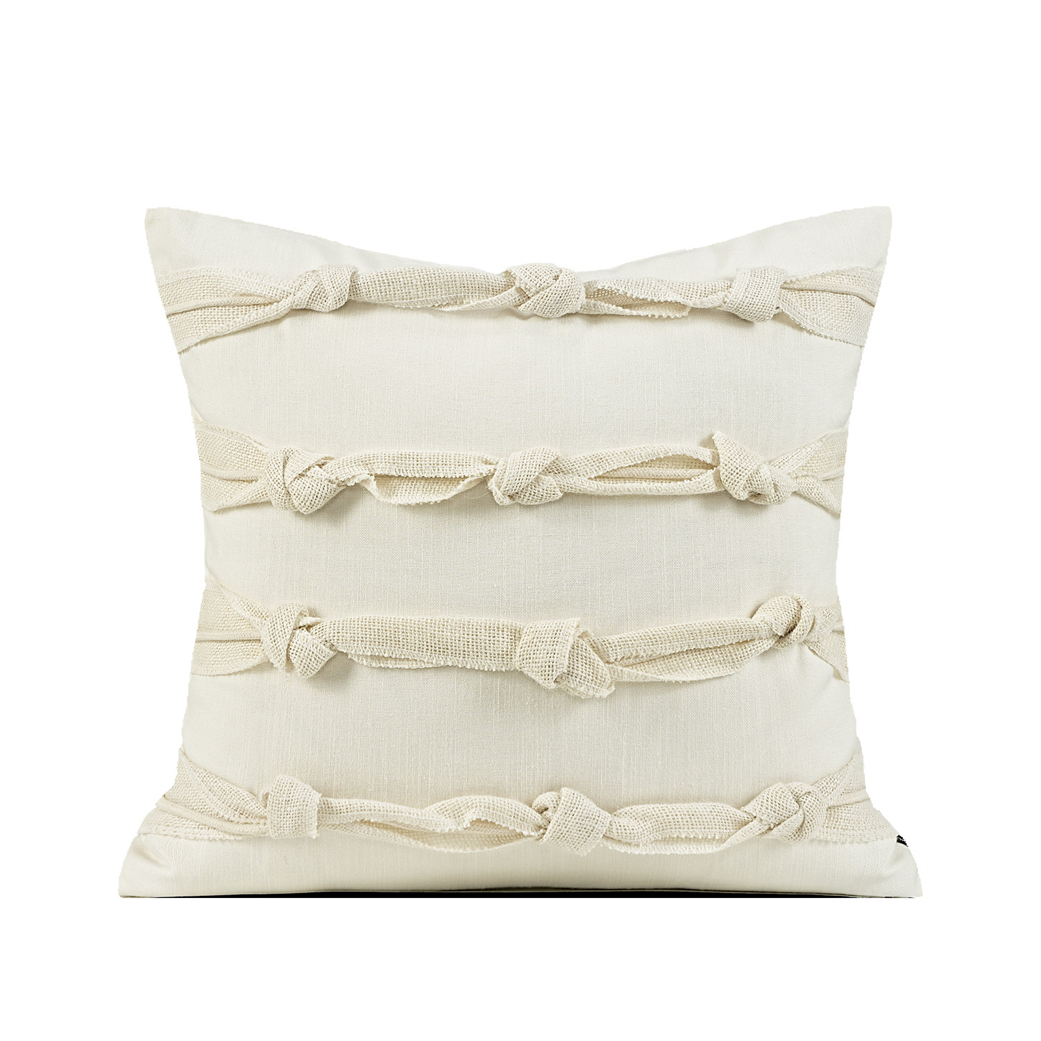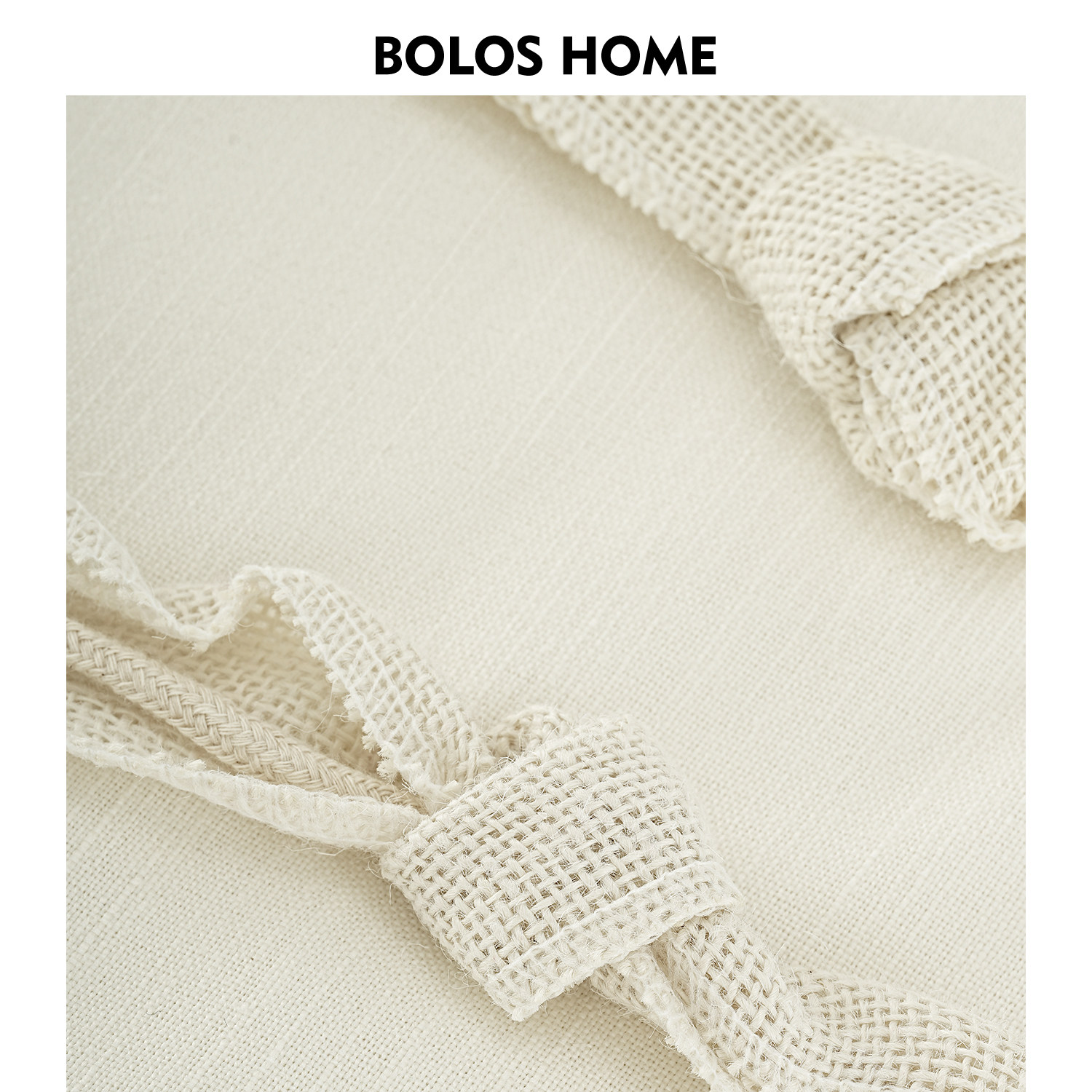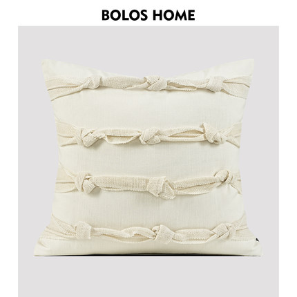 BOLOS侘寂风米咖色手工打结抱枕套轻奢样板房中古风棉麻沙发靠垫