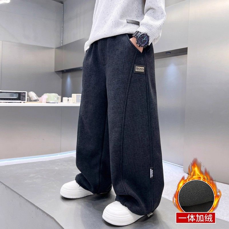 男童灯芯绒休闲裤冬季一体加绒保暖运动裤中大童男孩抽绳收脚卫裤