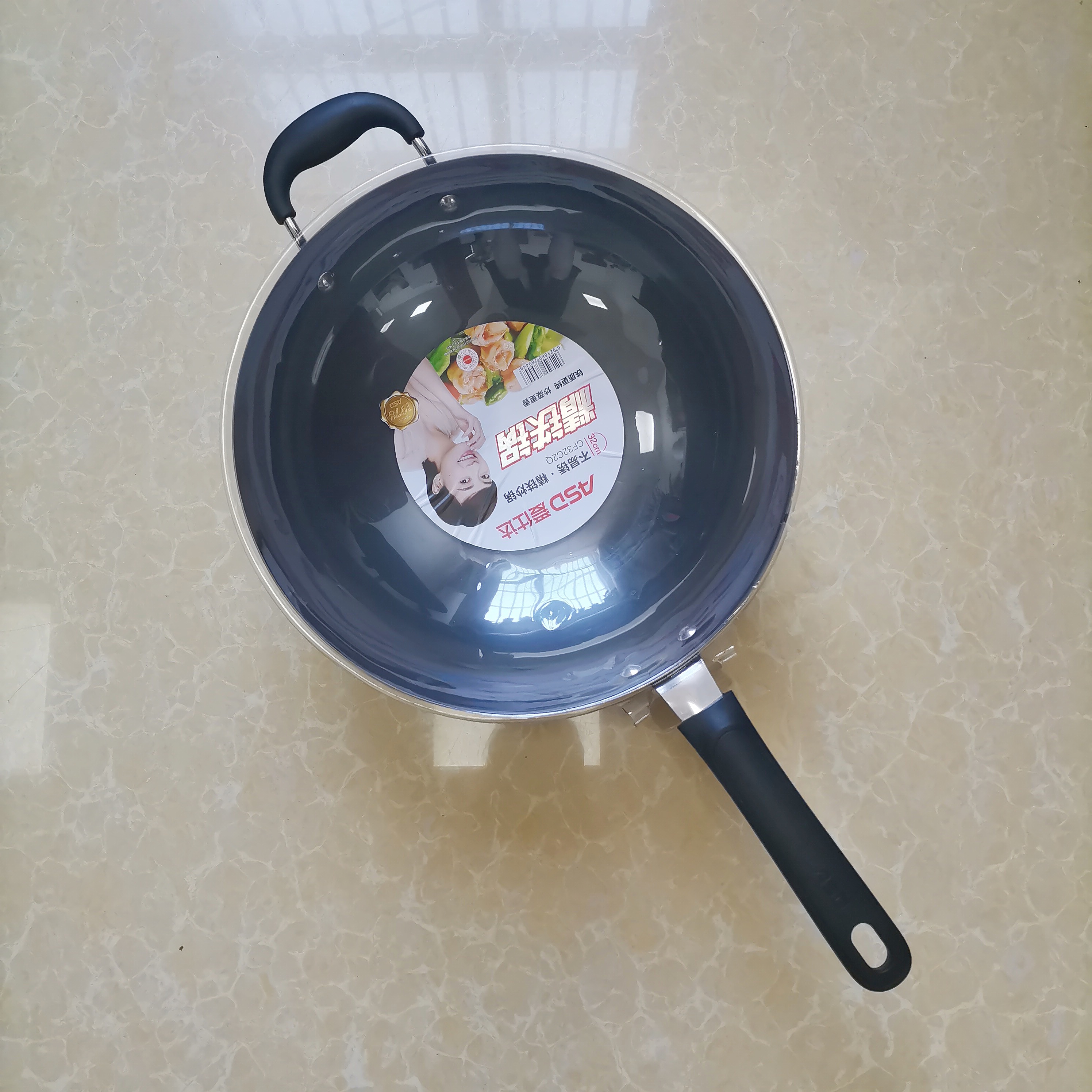 爱仕达精铁锅明火家用炒锅不粘炒菜锅铁锅平底锅电磁炉通用尖底