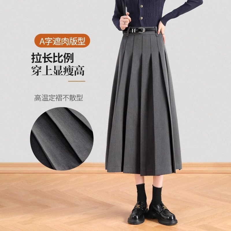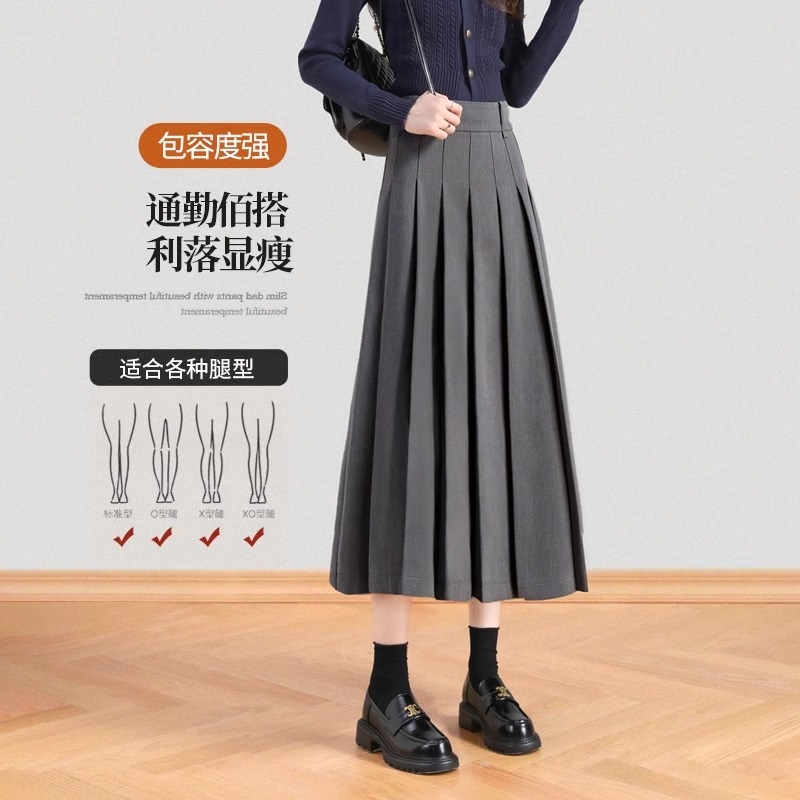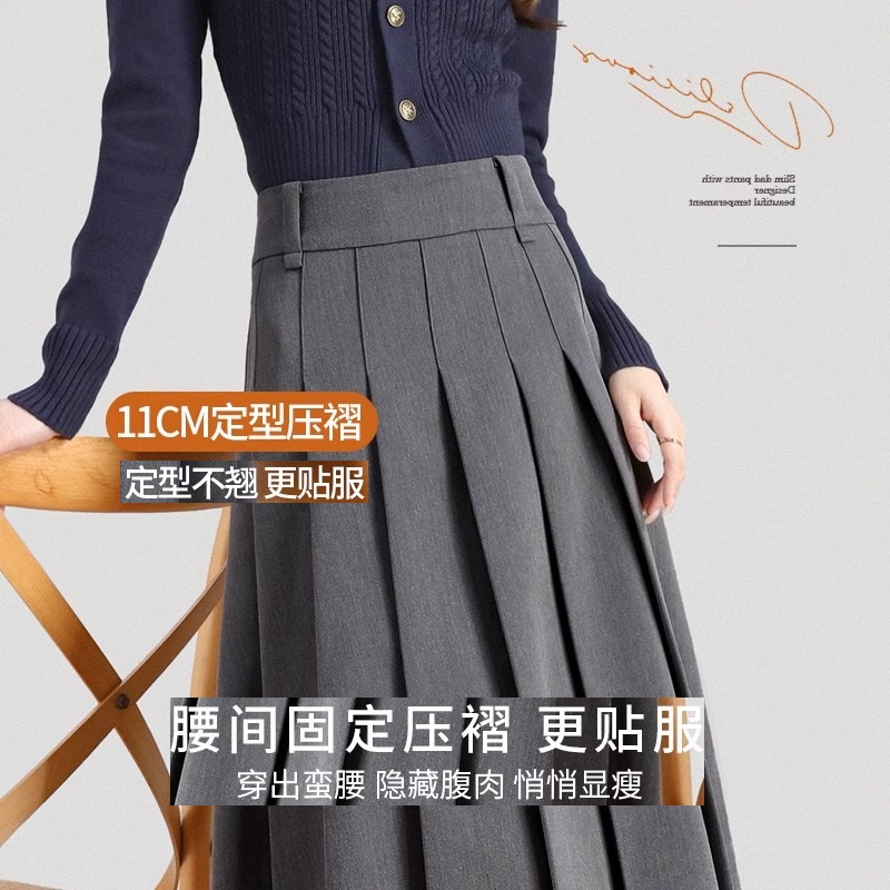 灰色西装半身裙女春秋2024新款高级感气质a字显瘦中长款百褶裙子