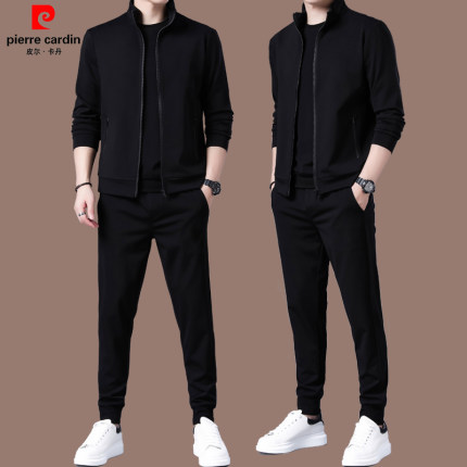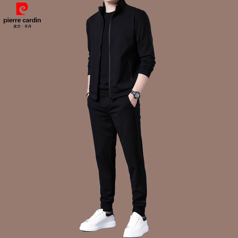 皮尔卡丹秋季男士高端桑蚕丝休闲运动套装青年时尚百搭卫衣三件套
