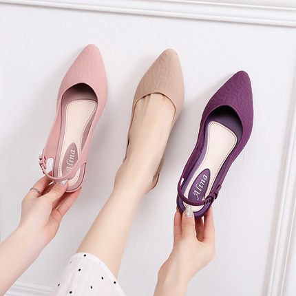包头时尚四季浅口单鞋中跟粗跟坡跟果冻凉鞋女夏百搭舒适防滑软底