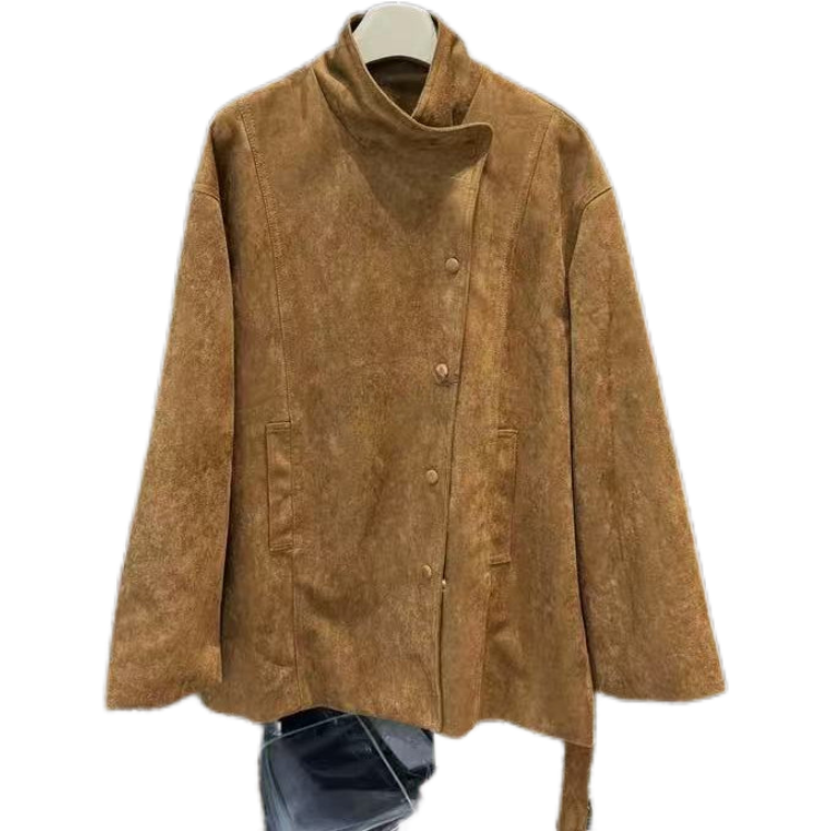 韩系休闲风立领中长款风衣外套女25秋季新款宽松百搭上衣QD16002