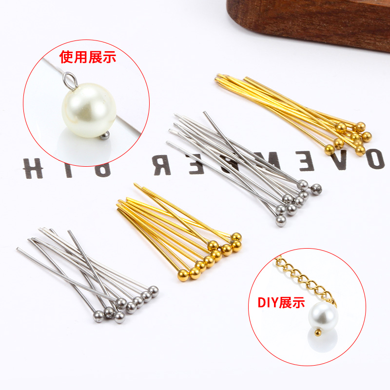 钛钢圆球针大头针饰品配件diy项链手链吊坠挂件手工材料穿孔配饰