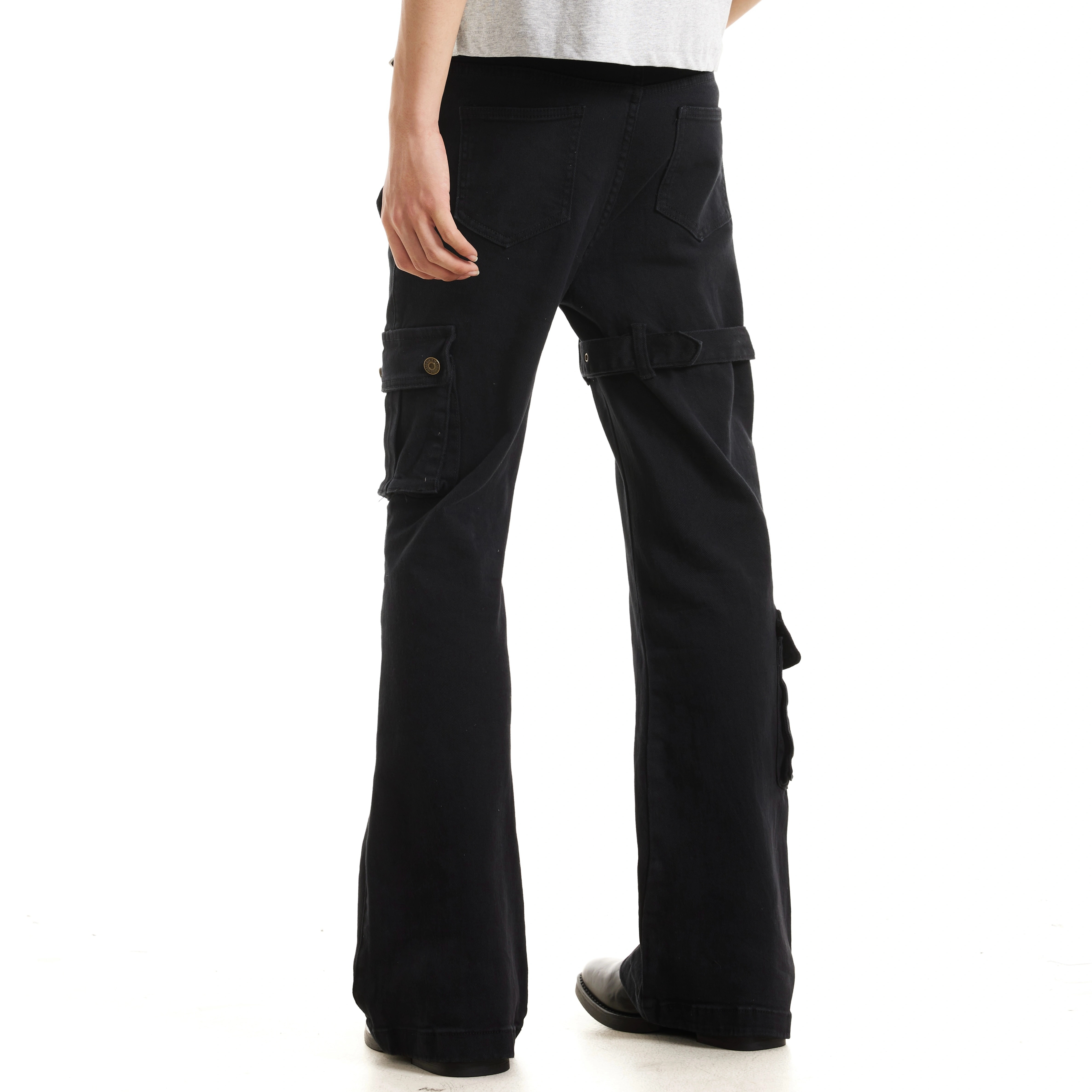 ZLAYCO黑色vibe绑带微喇牛仔裤