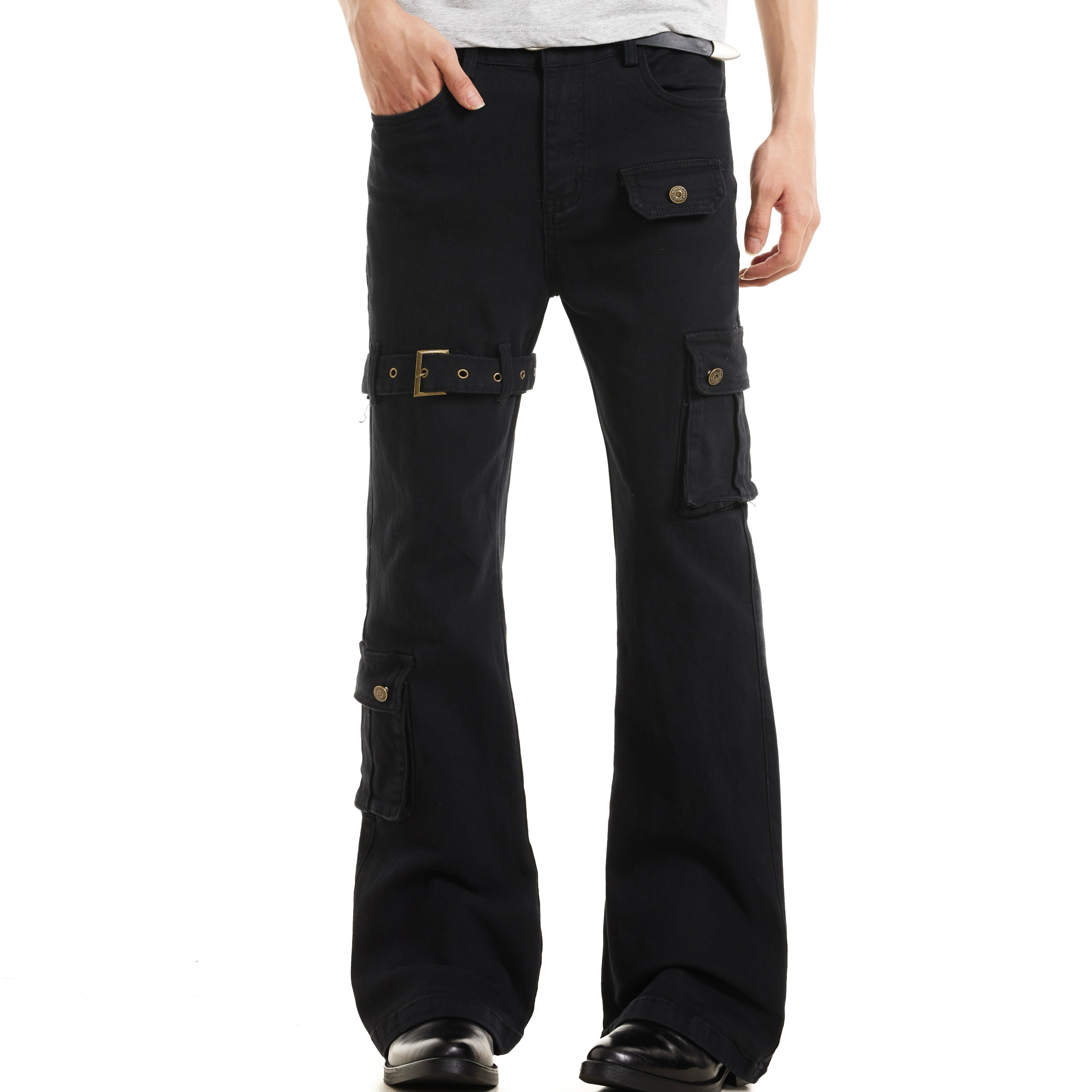 ZLAYCO夏季黑色vibe绑带男女微喇牛仔裤cleanfit美式高街长裤