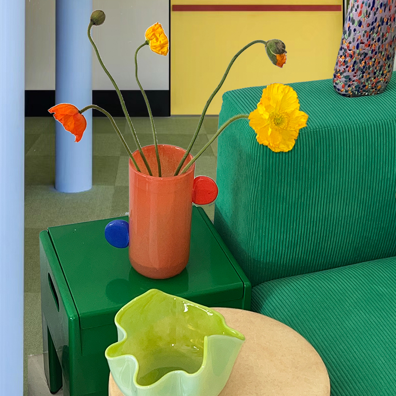 click哥本哈根小耳朵直筒花器彩色琉璃花瓶玻璃手工北欧ins风摆件