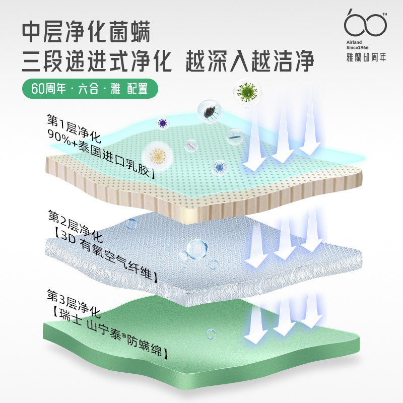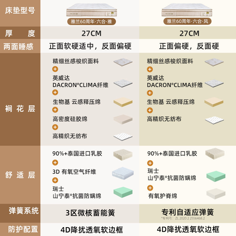 【雅兰60周年】雅兰进口乳胶独袋弹簧床垫软硬两用家用席梦思