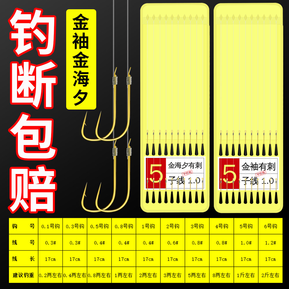 【对折10cm】野钓超短金海夕子线双钩成品绑好金袖鱼钩有无刺渔具