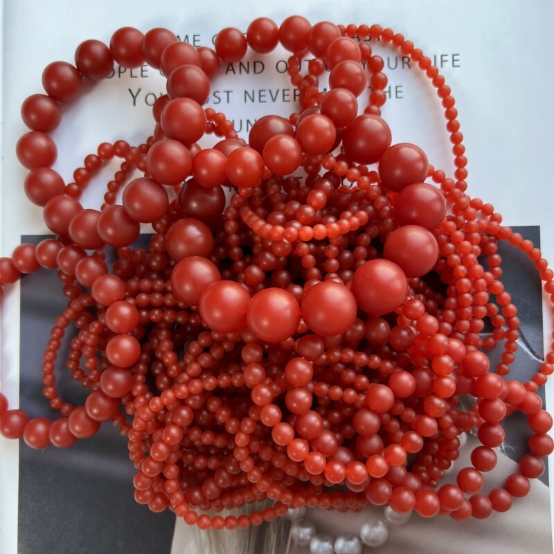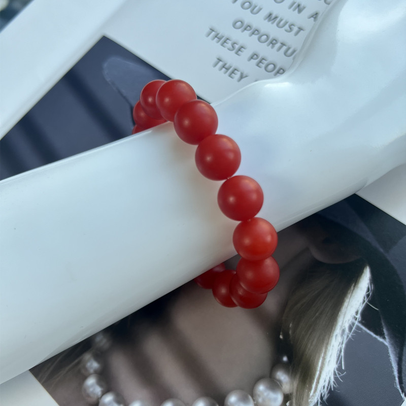 天然原矿保山南红玛瑙圆珠手串女手链男文玩柿子红本命年复古宝石
