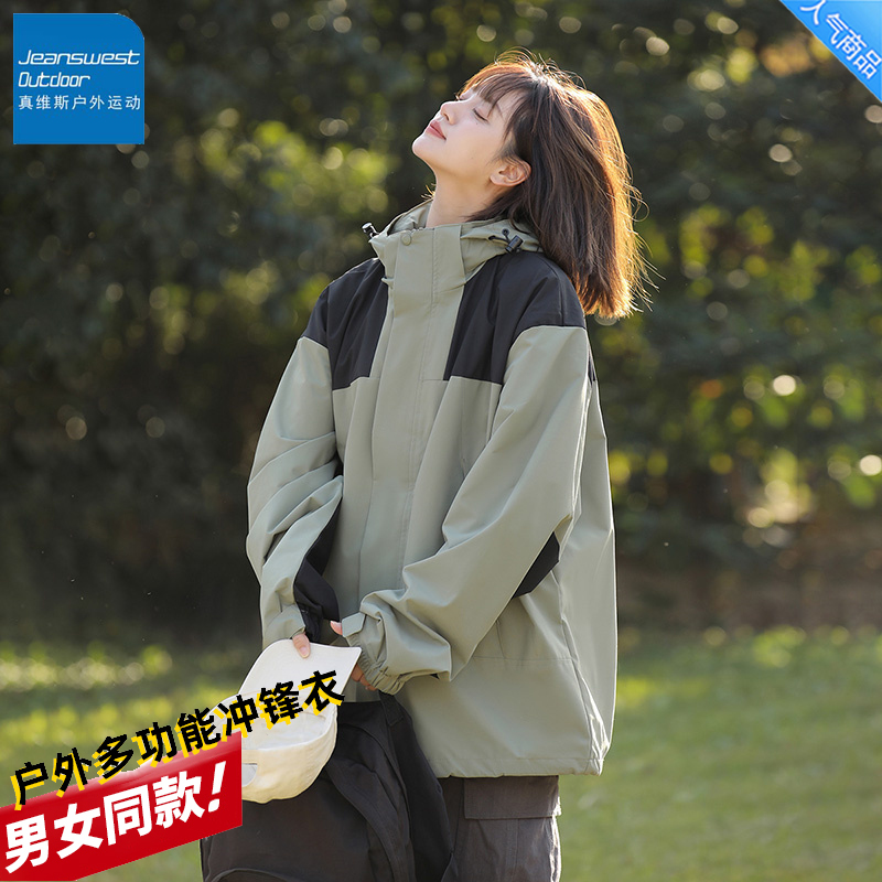 真维斯户外运动冲锋衣女款2025新款春秋登山服夹克连帽外套情侣款