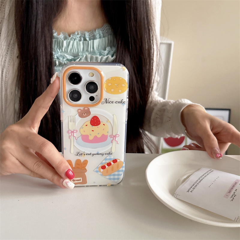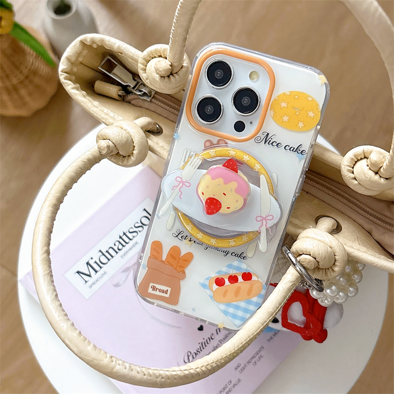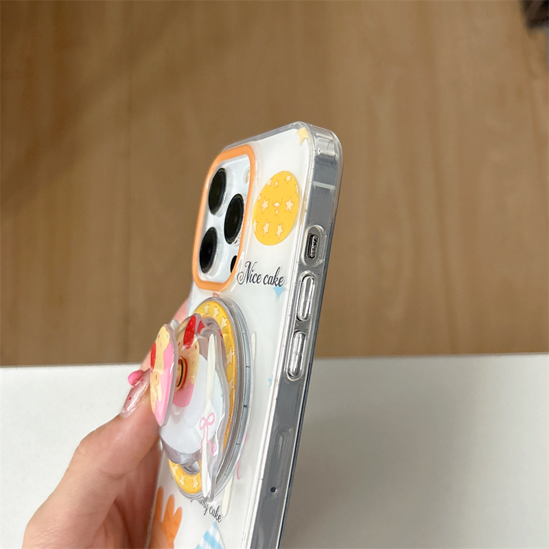 日韩ins卡通可爱少女心甜美下午茶甜品瑞士卷磁吸支架16promax适用iphone15pro双层14手机壳苹果13小熊牛角包