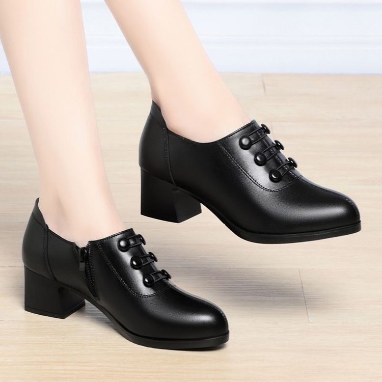 粗跟单鞋女2025年秋季新款百搭软底时尚女鞋中跟皮鞋爆款妈妈鞋女