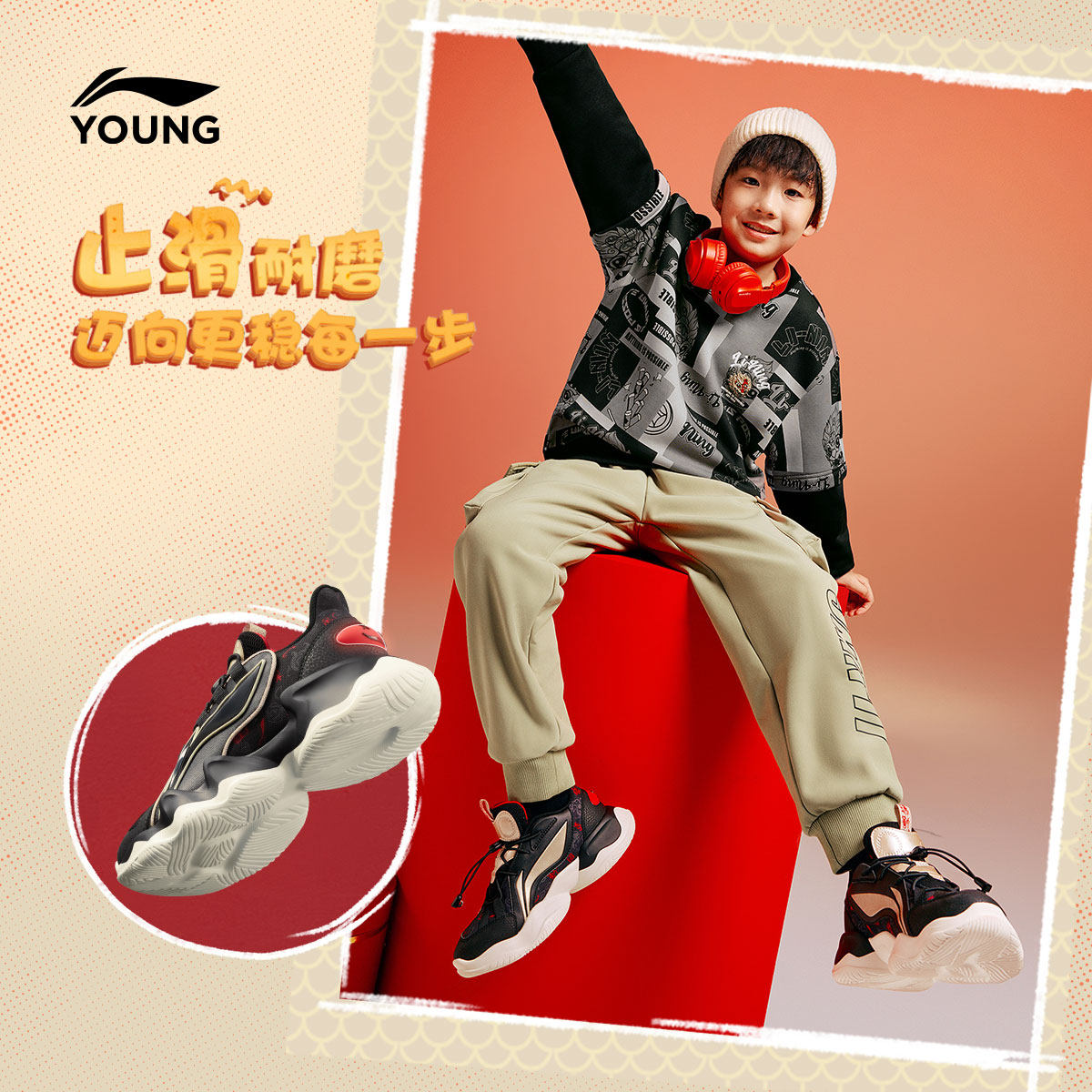 新年款|李宁儿童运动鞋轻便软底秋冬款男童鞋女中大童过年老爹鞋