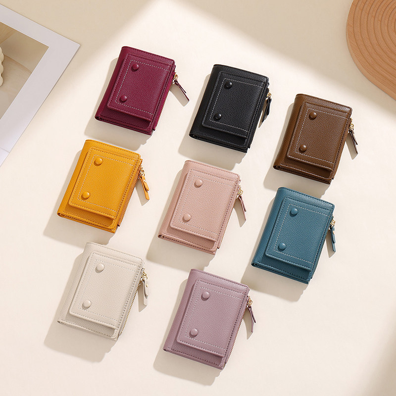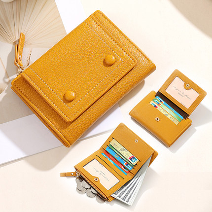 简约小钱包女款轻薄短款学生钱夹银包荔枝纹少女心卡包零钱包一体