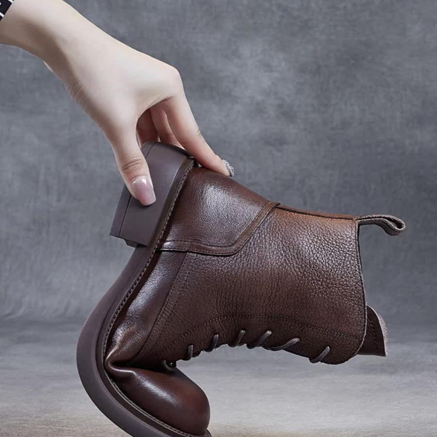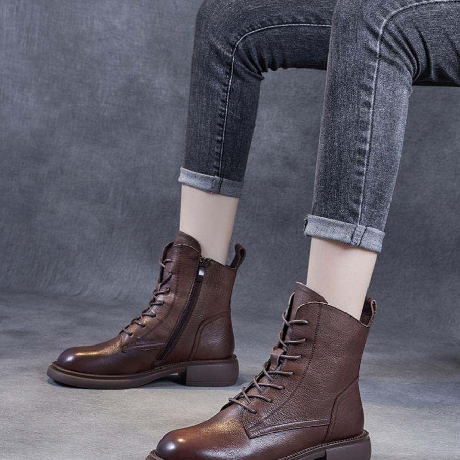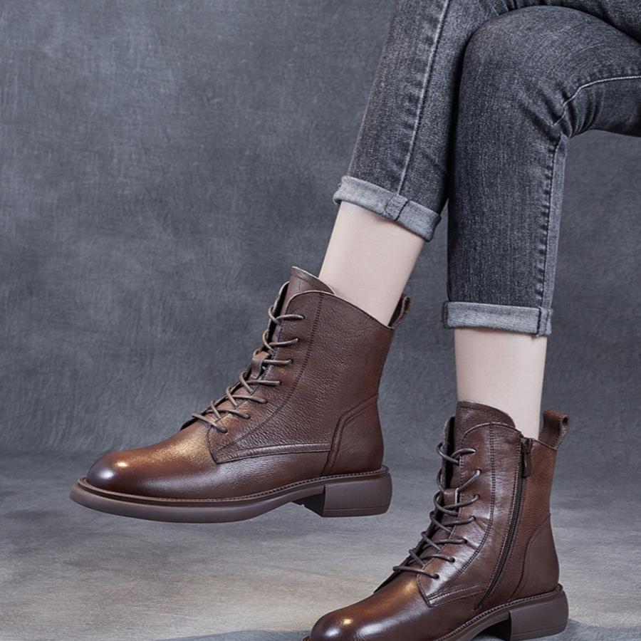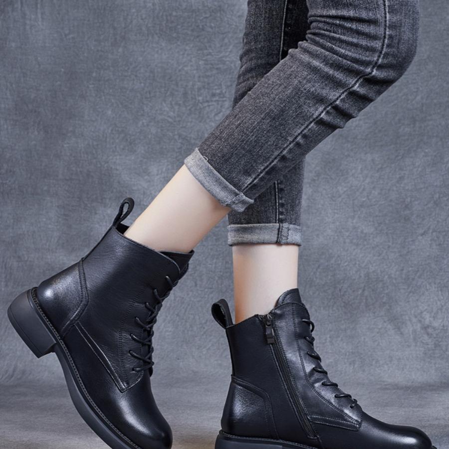 头层牛皮复古英伦风马丁靴女款2025新款秋百搭显瘦中筒靴子短靴