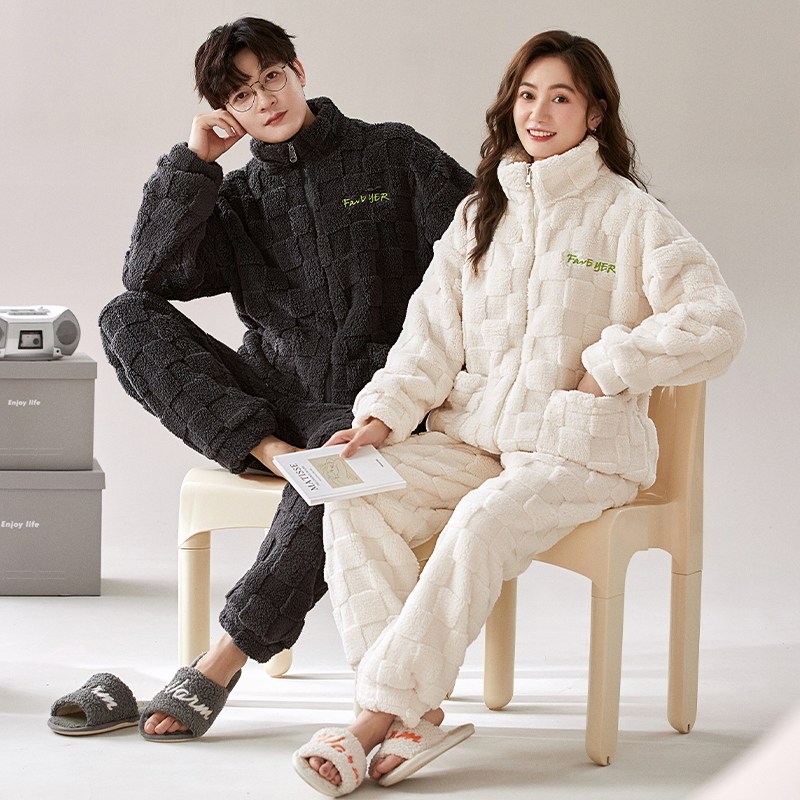 睡衣情侣保暖秋冬季法兰绒加厚加绒开衫套装珊瑚绒女款男士家居服