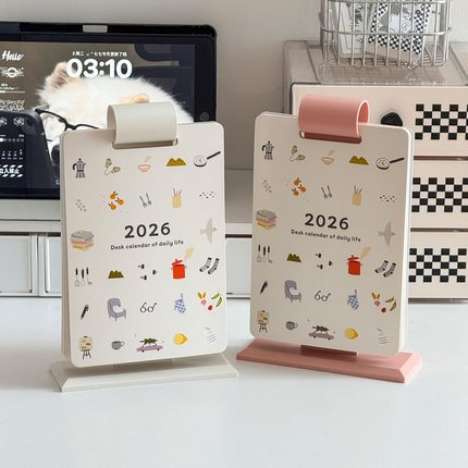 2026年新款高颜值桌面翻页台历架可爱办公日历摆件计划打卡月历本