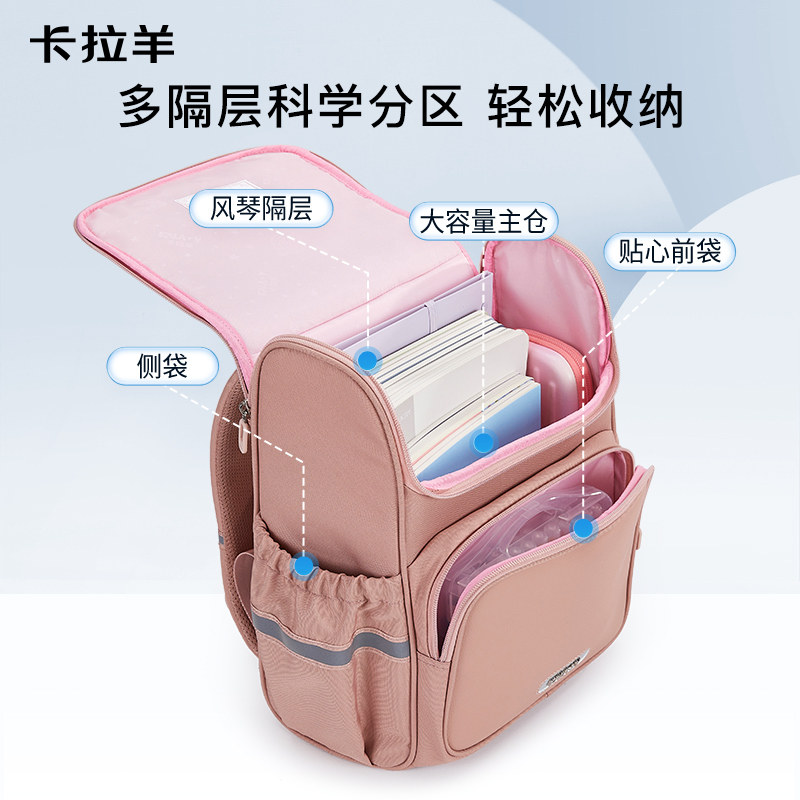 卡拉羊小学生书包大嘴儿童男生减负大容量女生双肩背包官方正品