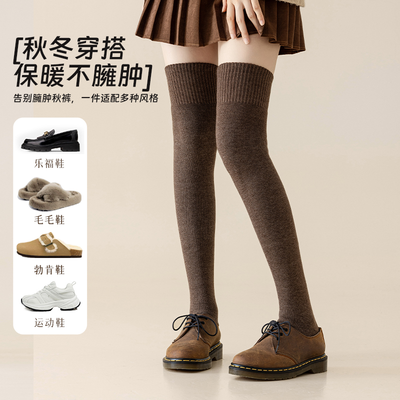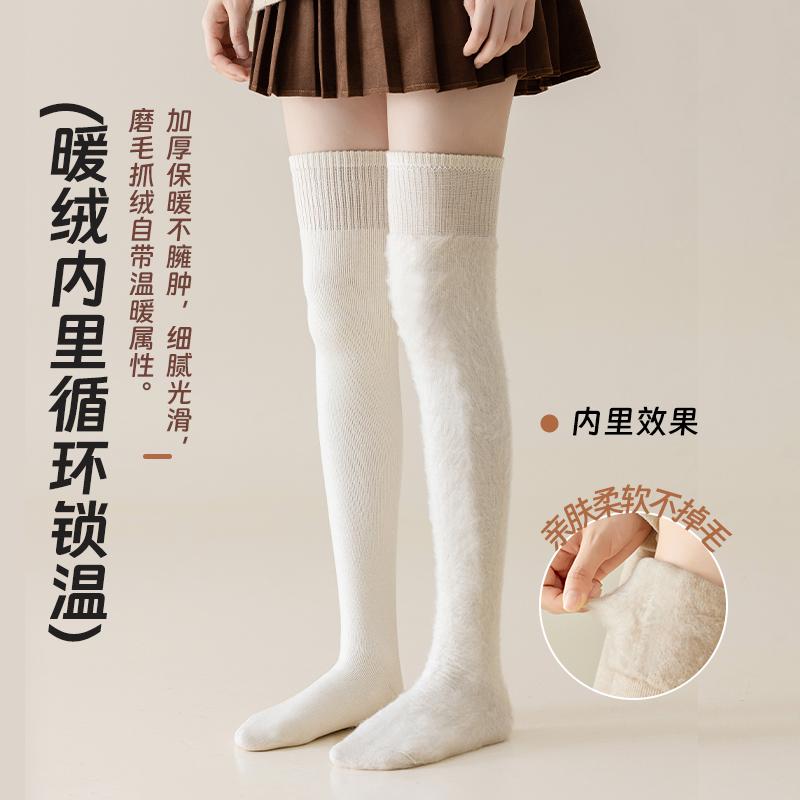 过膝长筒袜子女秋冬季加绒加厚毛圈外穿打底袜防下滑高筒大腿冬天