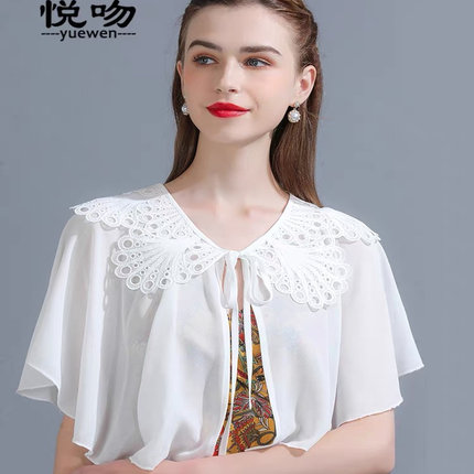 旗袍披肩外套新款夏季薄款配裙子外搭雪纺开衫短款斗篷防晒披风女