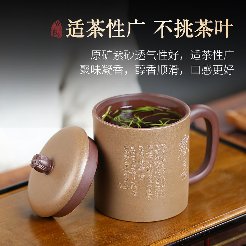 宜兴紫砂杯男女士款大容量泡茶杯纯手工刻字中式正品真原矿高端杯