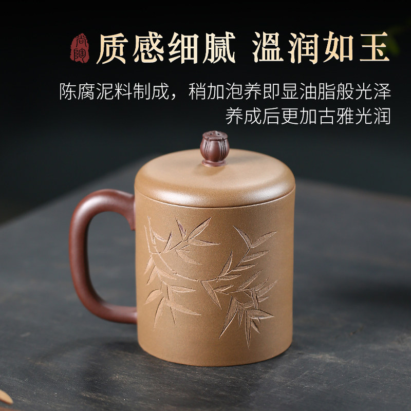 宜兴纯手工原矿大容量带盖紫砂杯