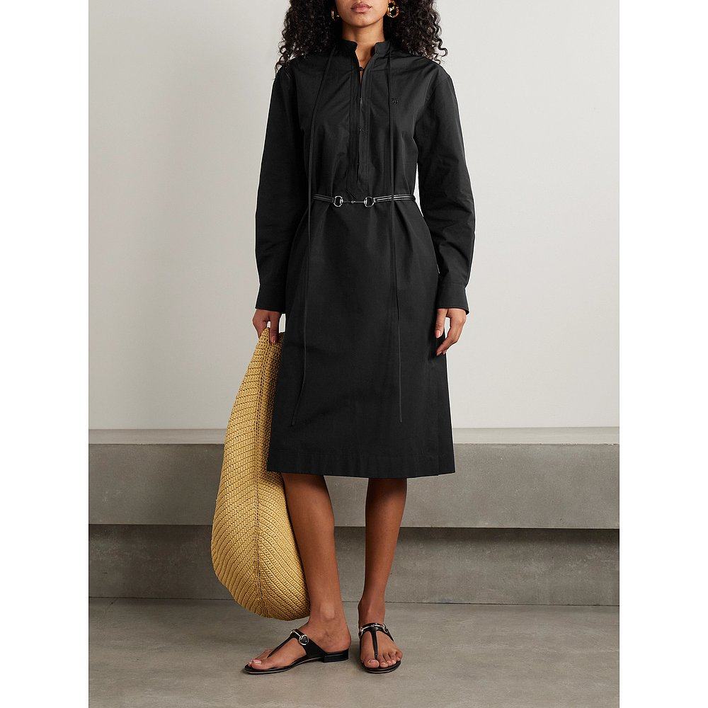 潮奢 Gucci 古驰 女士 饰马衔扣腰带棉府绸连衣裙 835601Z8B1W