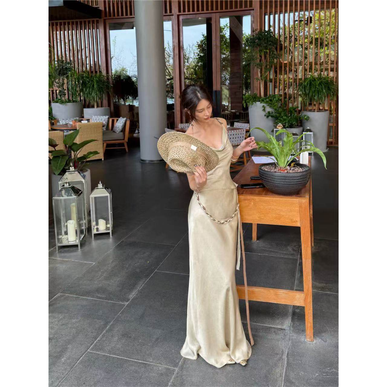 HanLu studio收腰编织拼接吊带微鱼尾半身裙波嬉风BohoChic套装