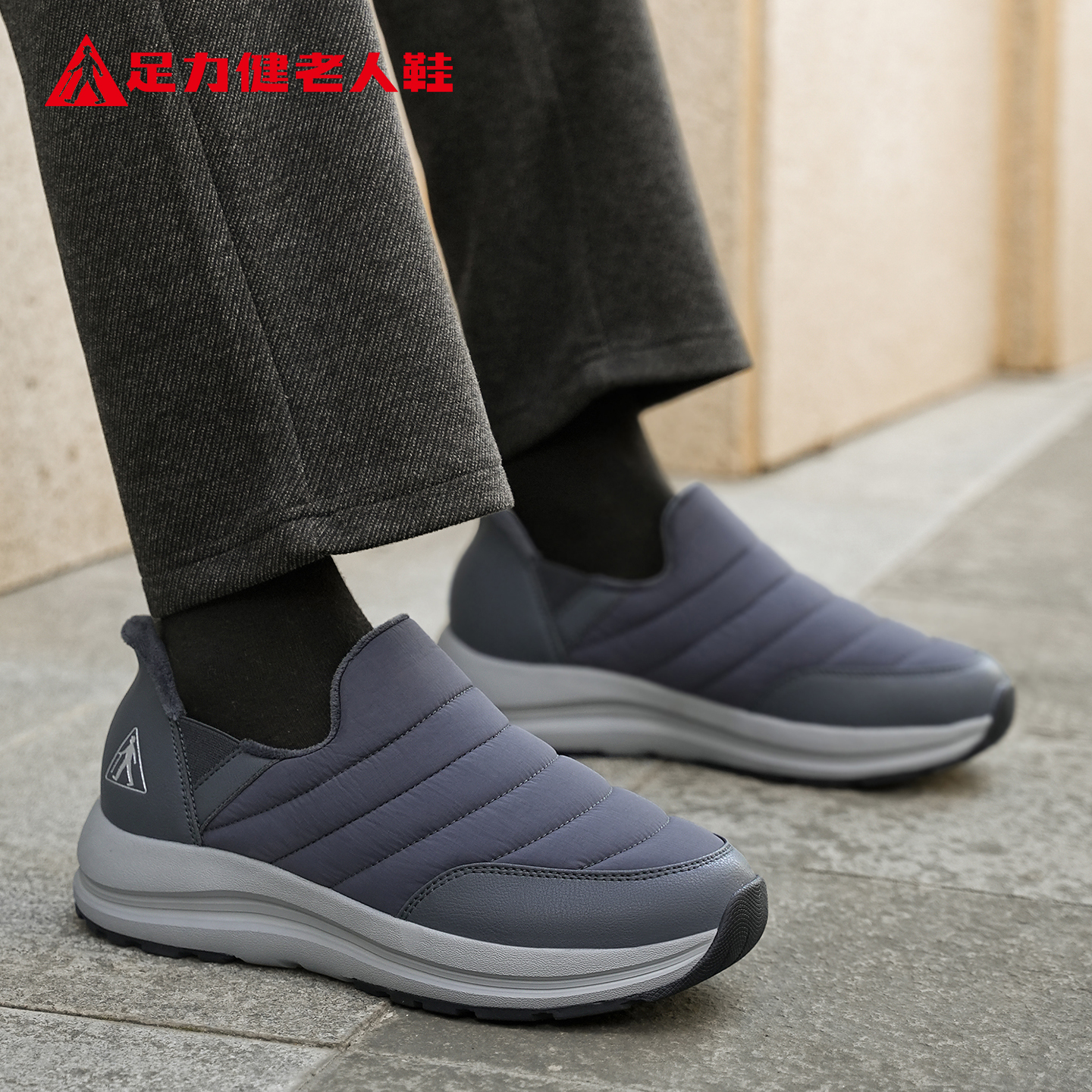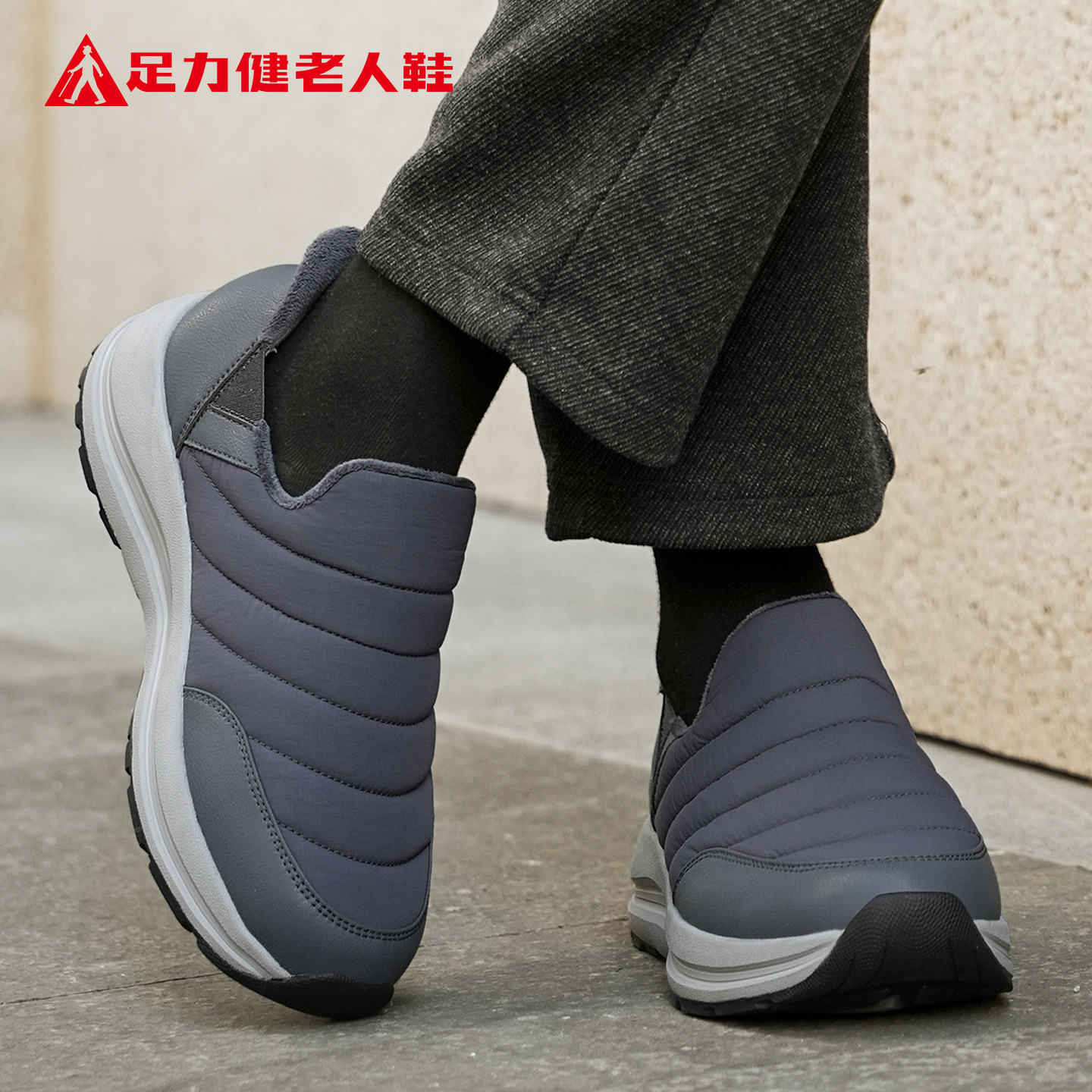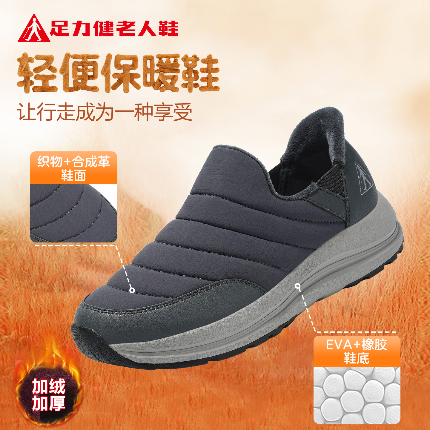 足力健老人鞋冬季新款男女同款舒适保暖厚底经典超短靴休闲雪地靴