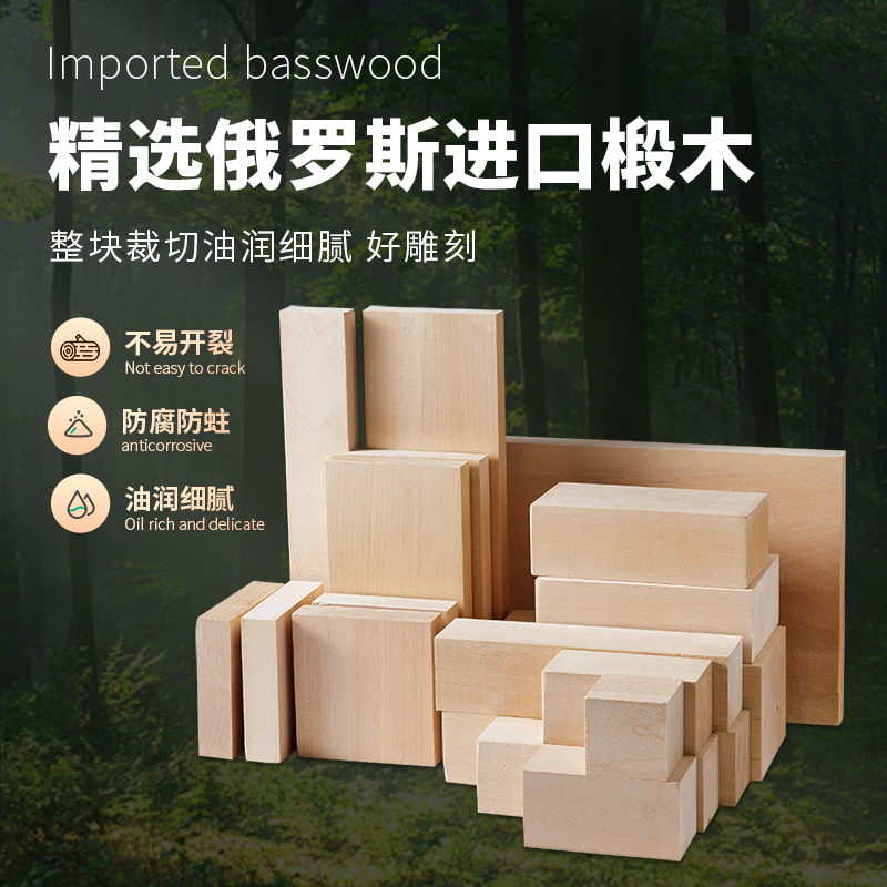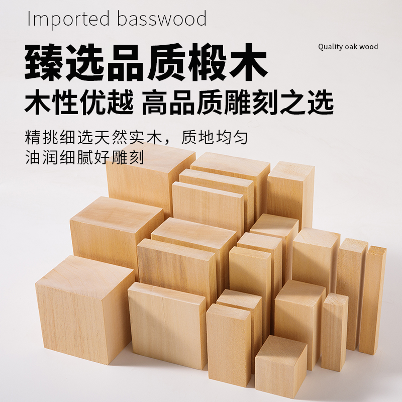 进口椴木雕刻木料手工DIY新手练手木雕木方原实木块板定制软轻木