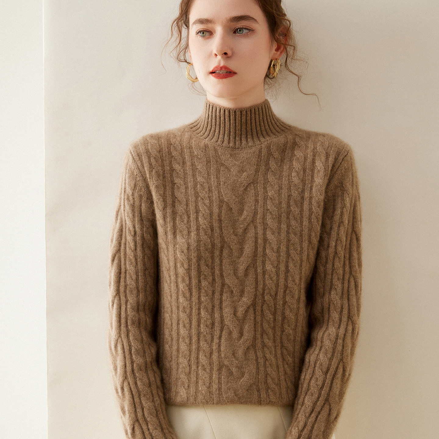 重磅三股加厚半高领女100%纯山羊绒套头毛衣麻花内搭宽松打底衫冬