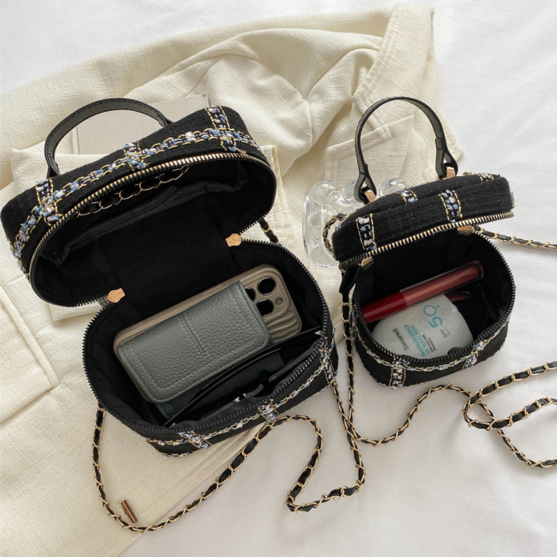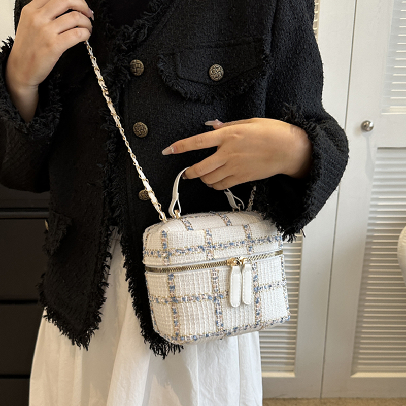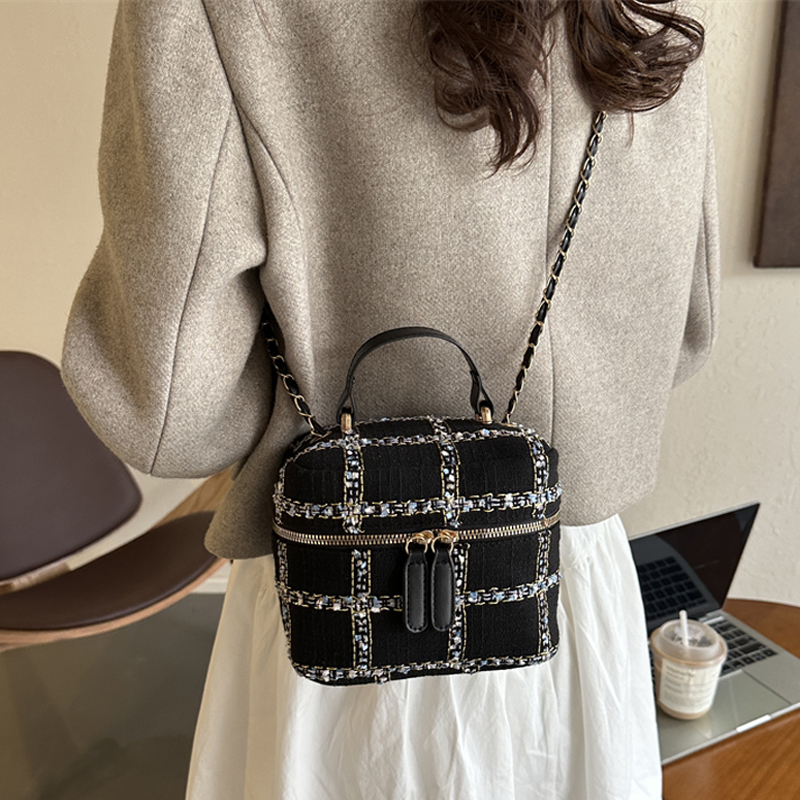 迷你小包包女2023秋冬新款时尚呢子单肩小方包爆款链条斜挎水桶包
