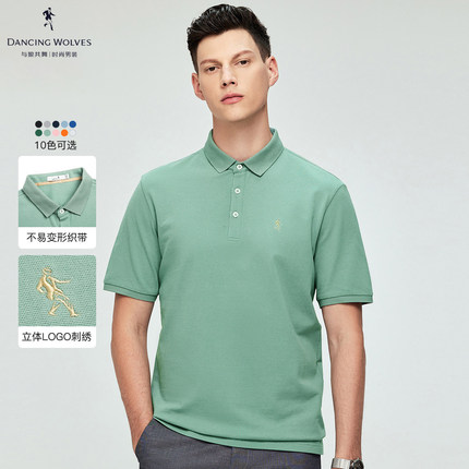 【纯棉】与狼共舞短袖T恤男2023夏季新款透气纯色简约翻领polo衫