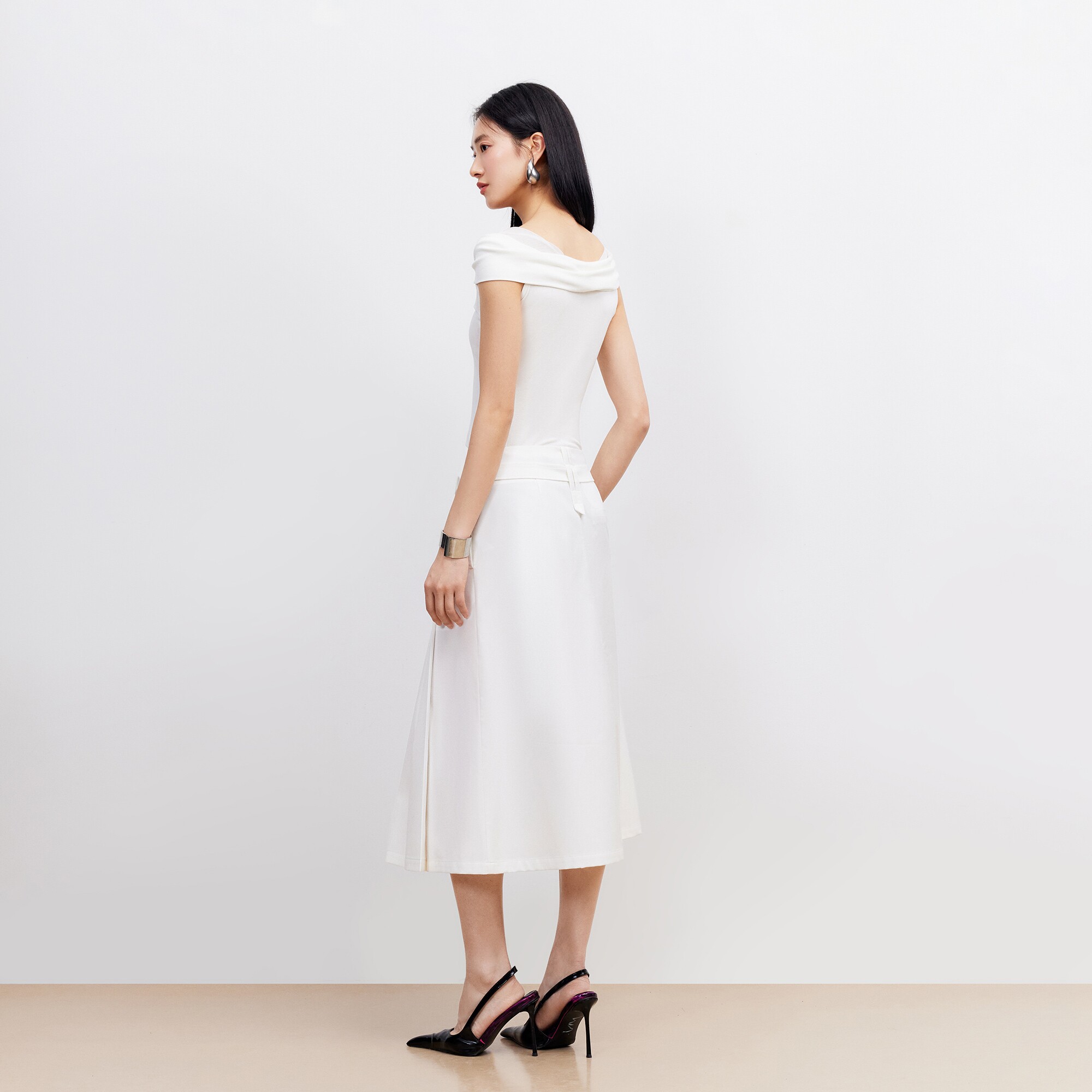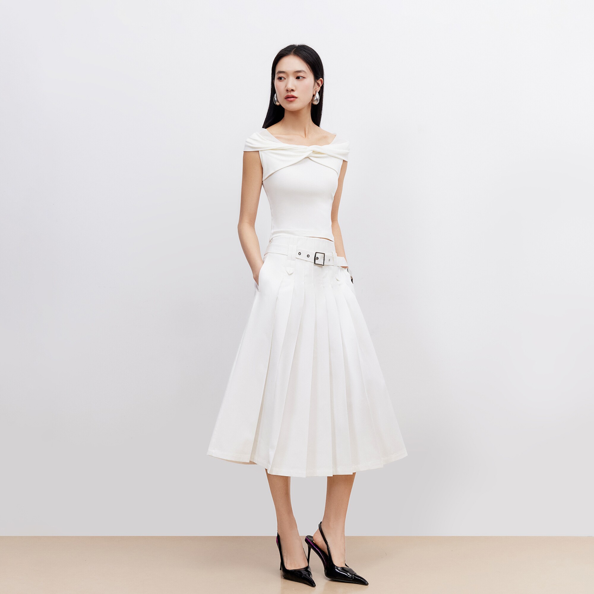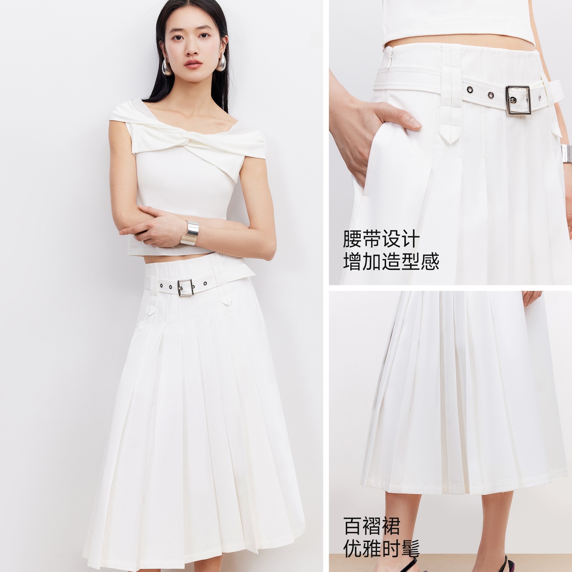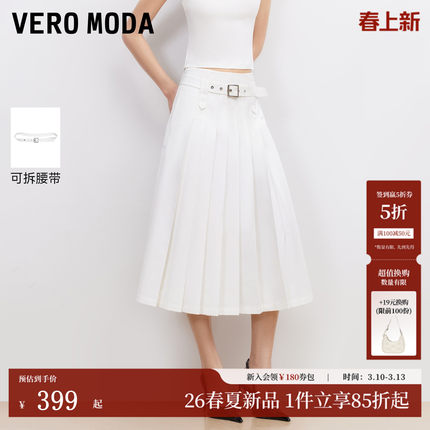 Vero Moda半身裙2026夏季新款可拆腰带百褶高腰中长裙优雅时髦
