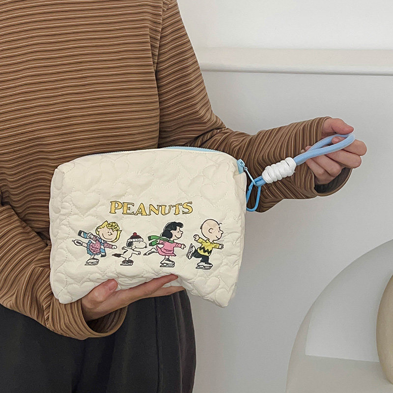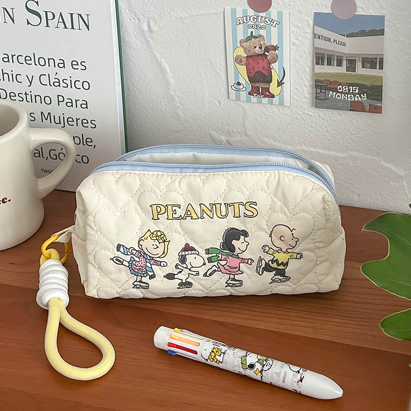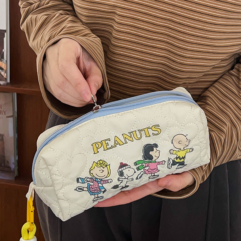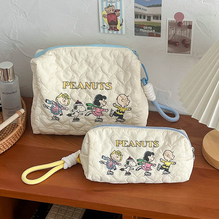 蔷薇海洋 卡通史努比笔袋ins可爱治愈手提收纳包大容量旅游化妆包