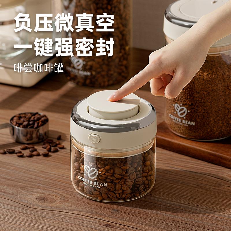 按压式咖啡豆储存罐玻璃密封罐食品级茶叶罐干货零食防潮收纳罐子