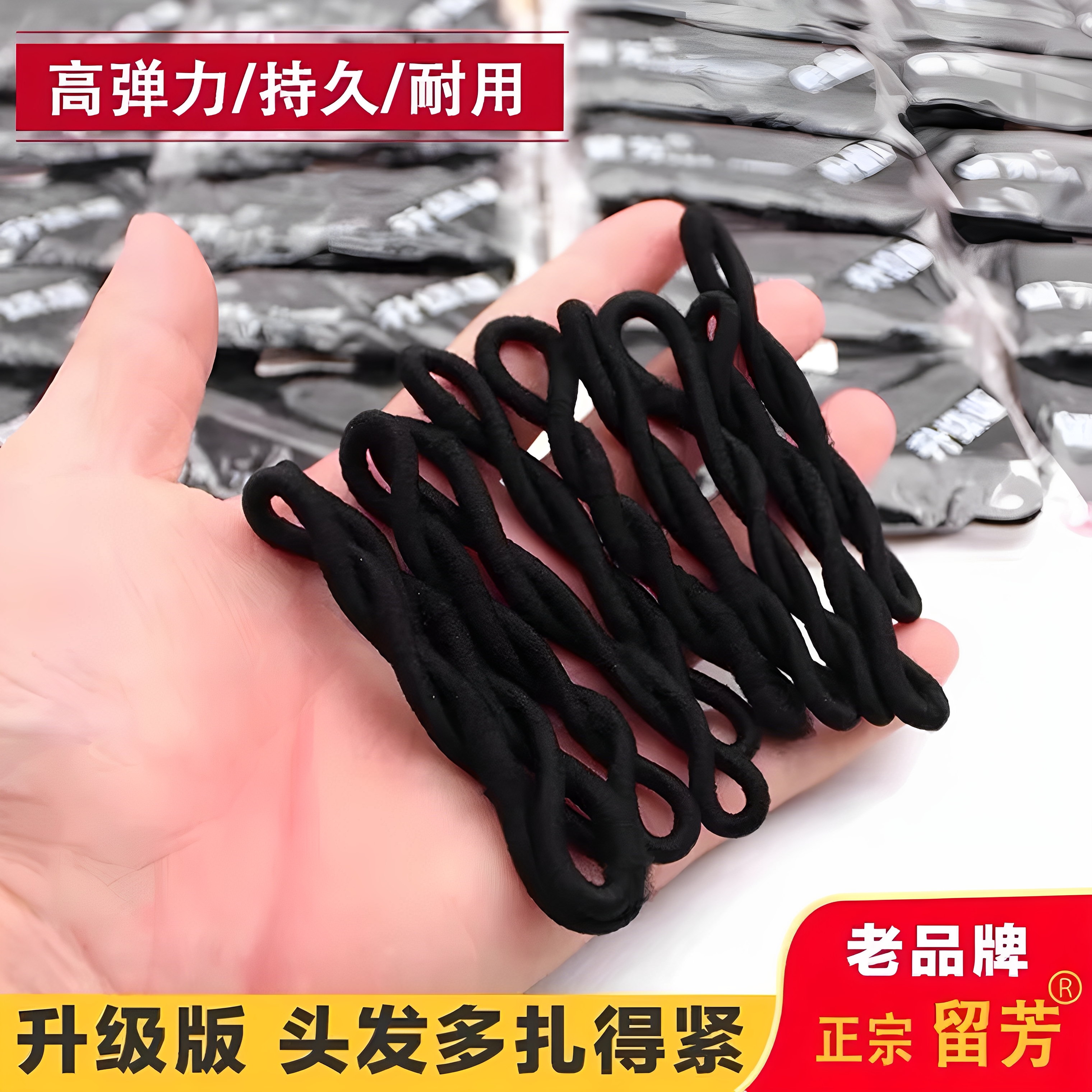 大号老式留芳高弹力橡皮筋女基础黑色发绳发圈扎马尾盘发头绳皮套