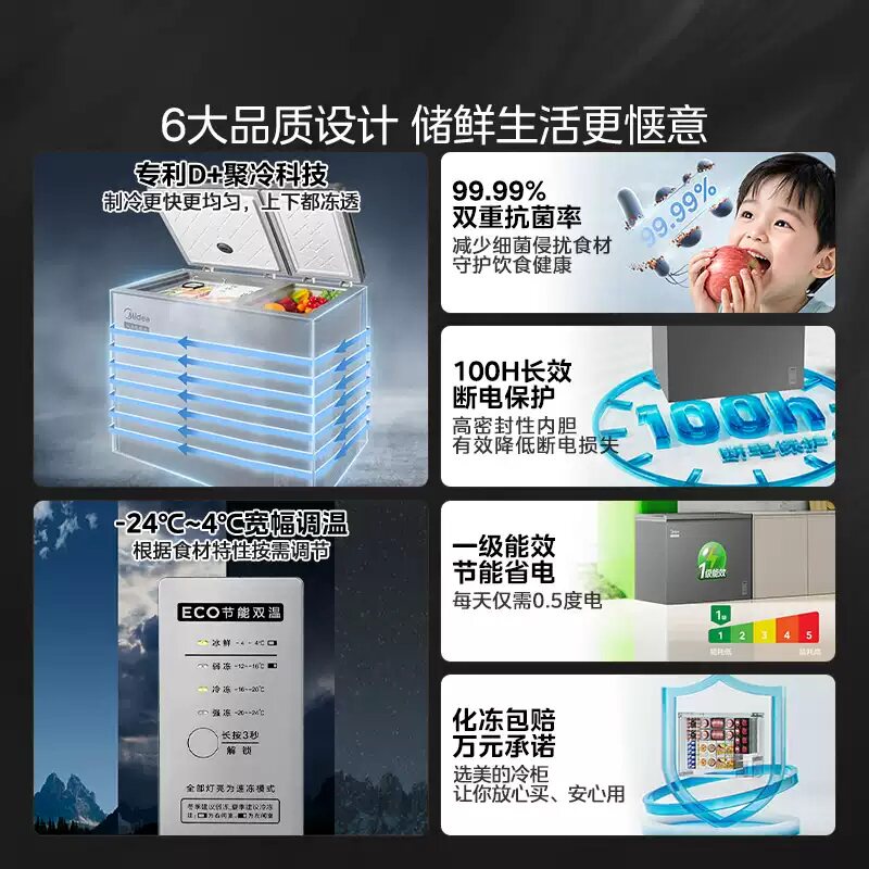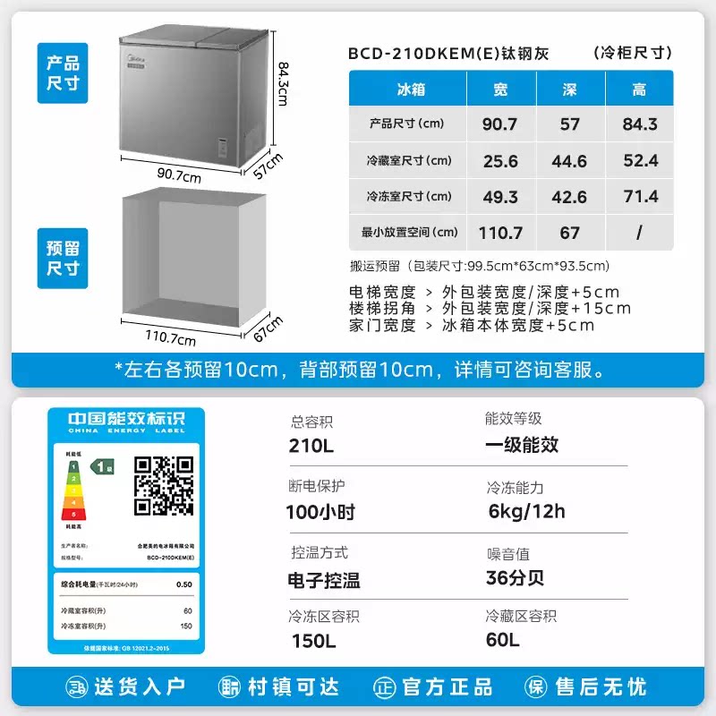 美的210升双温冰柜家用小型冷冻冷藏卧式冷柜低霜囤鲜商用冷柜