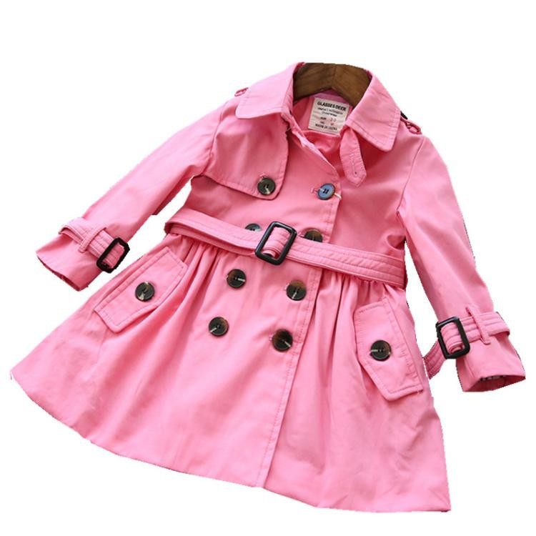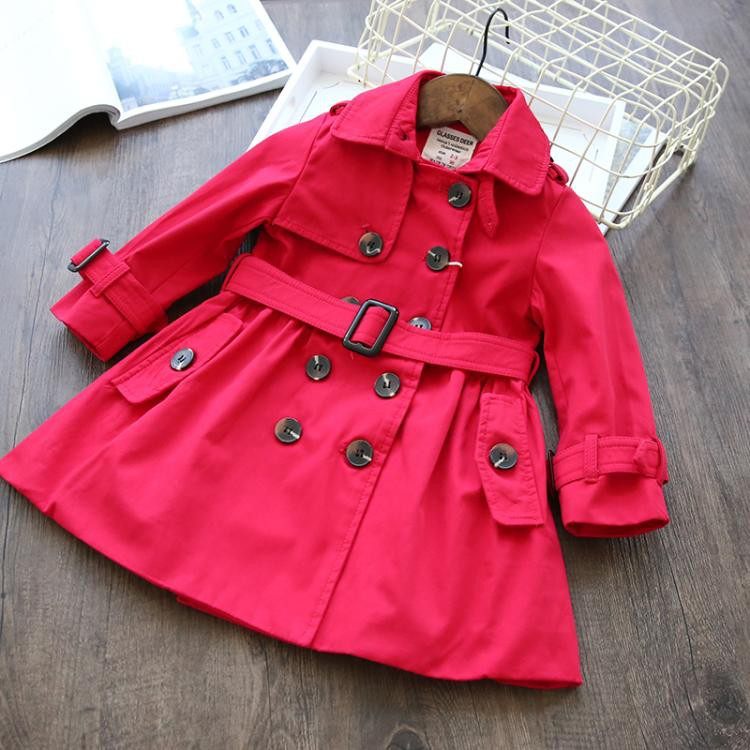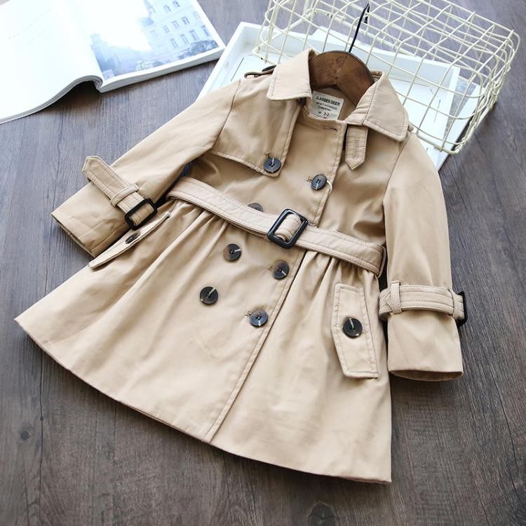 女童双排扣收腰风衣欧美纯棉春季