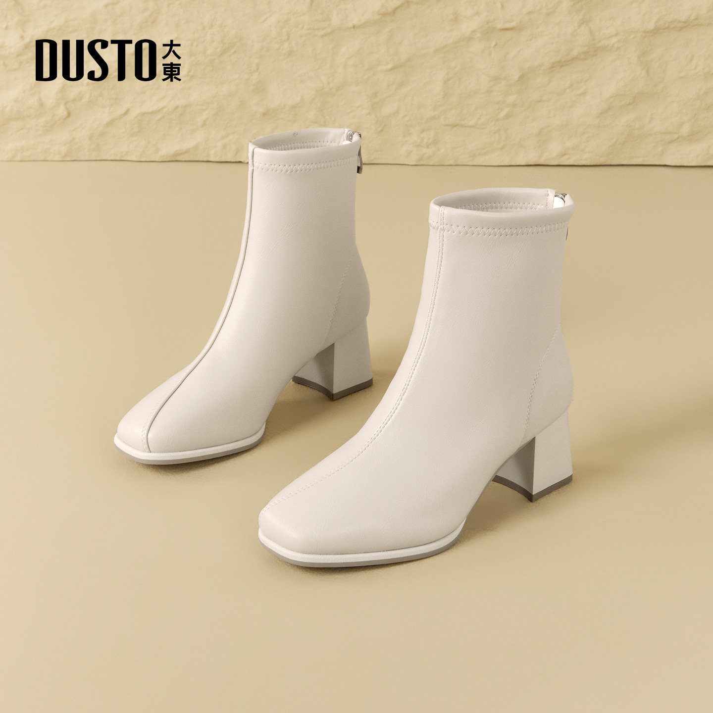大东女靴时装靴2025冬季新款时尚优雅短靴粗跟后拉链通勤显瘦靴子