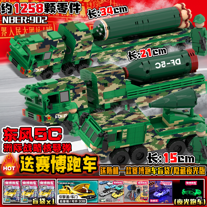 东风5C洲际战略导弹积木乐le高军事系列东风61导弹车模型拼装玩具