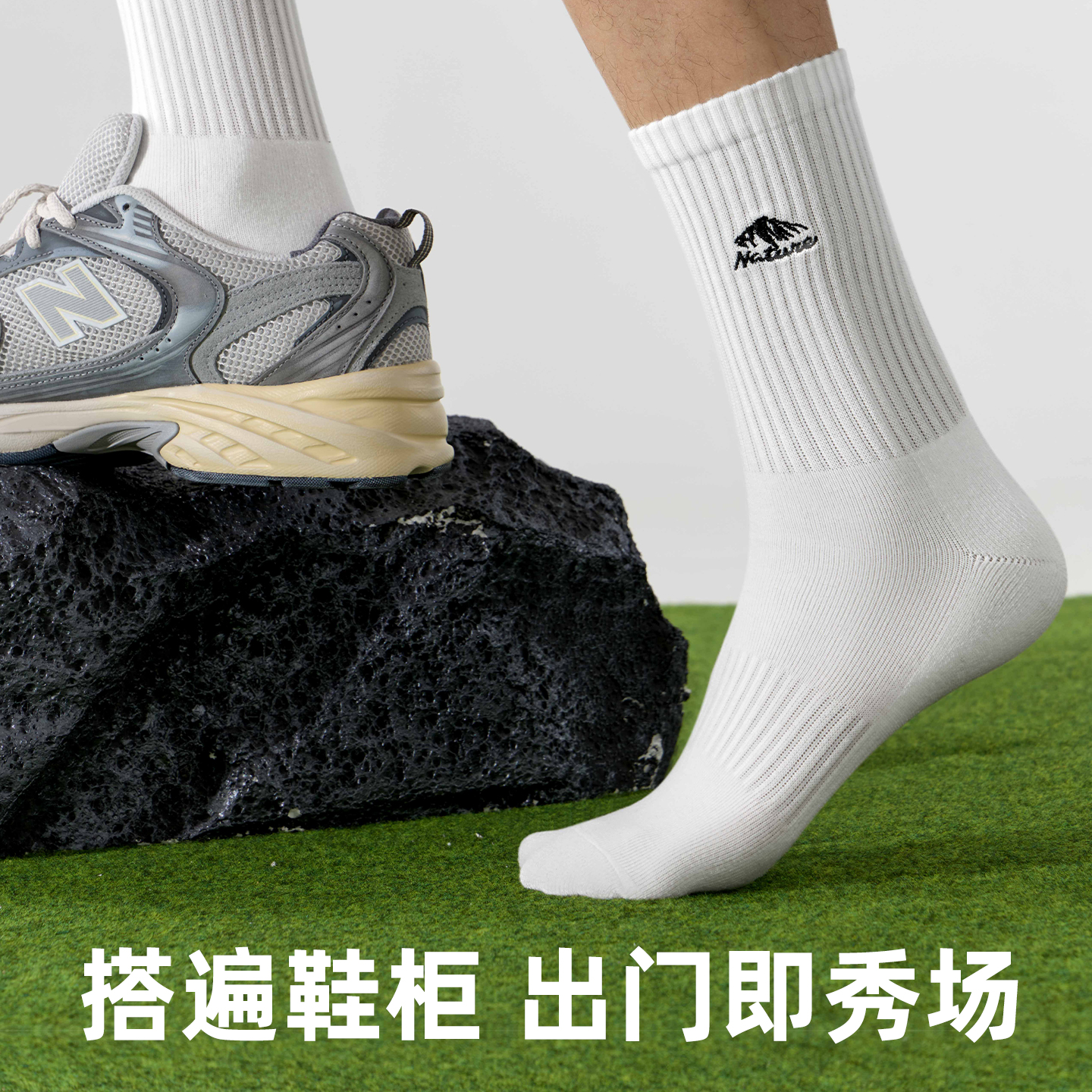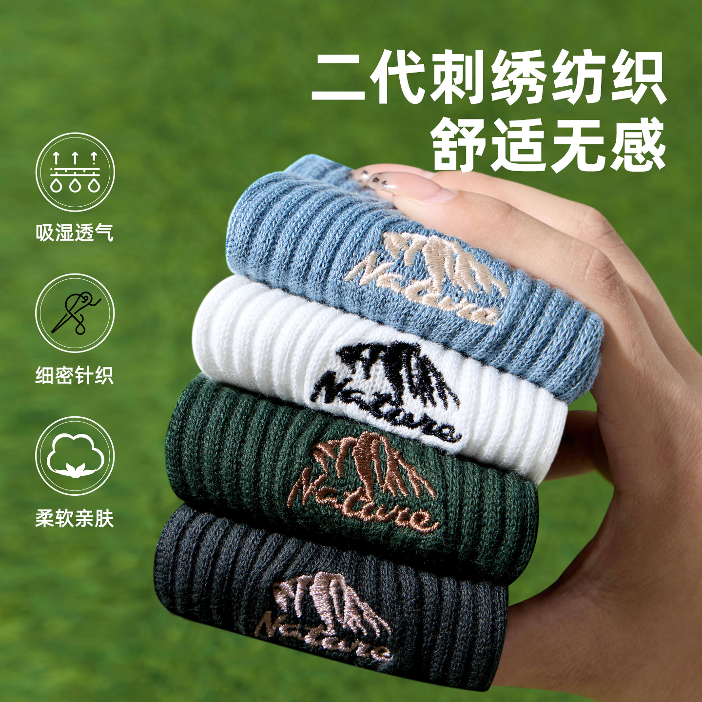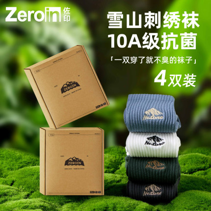 佐印袜子男士秋冬中筒袜刺绣棉袜运动长袜吸汗10A抗菌防臭男袜4双