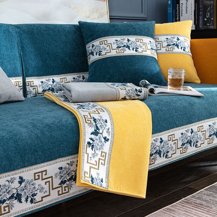 雪尼尔新中式红木沙发垫四季通用防滑实木坐垫保护套罩盖布巾定制